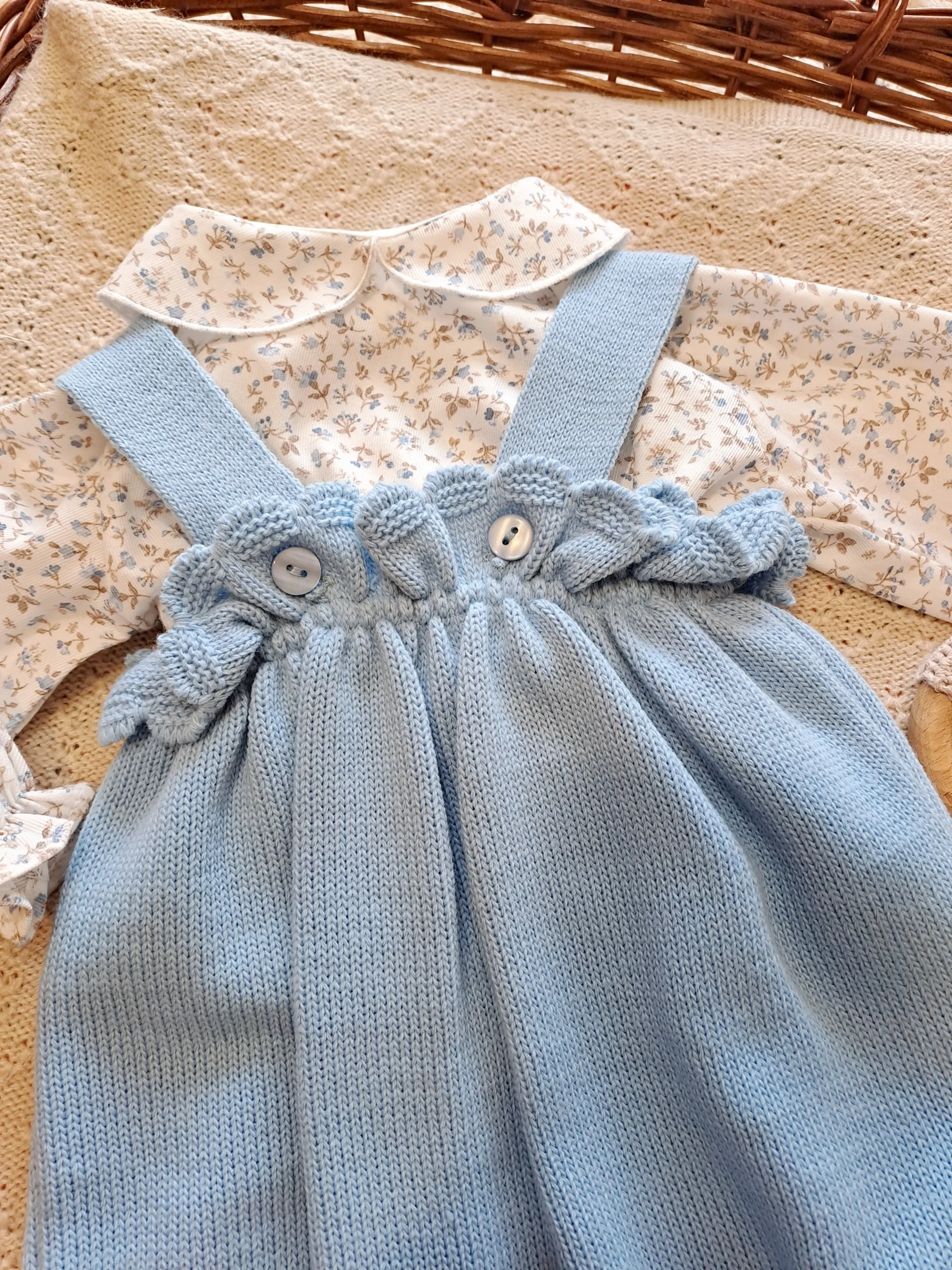 Conjunto de ranita de punto y camisa de flores