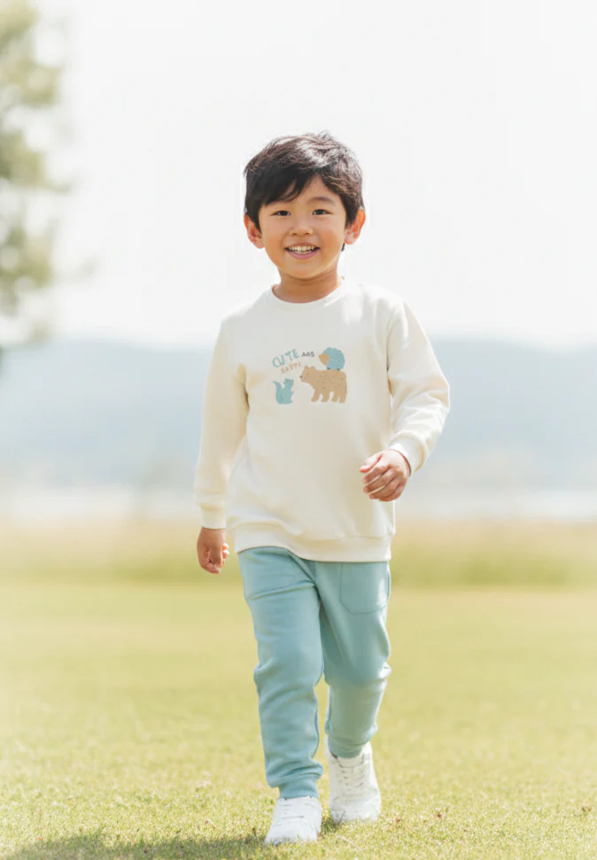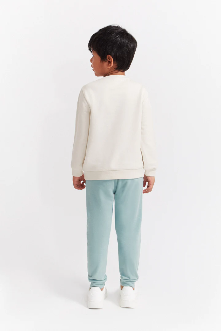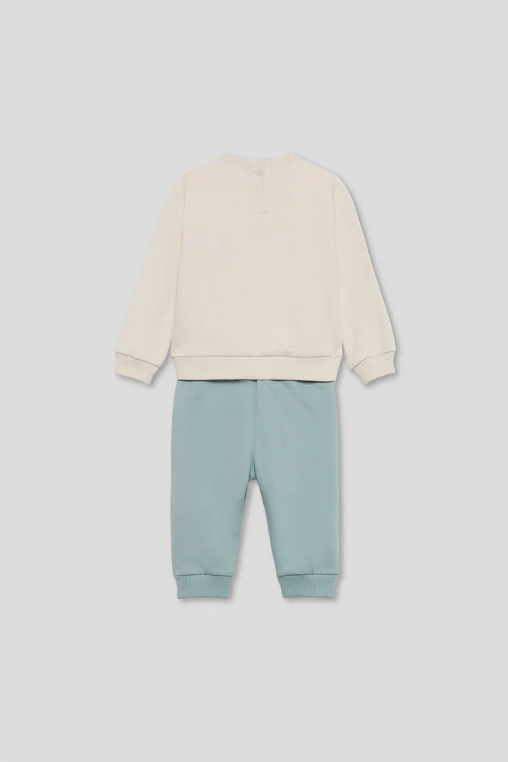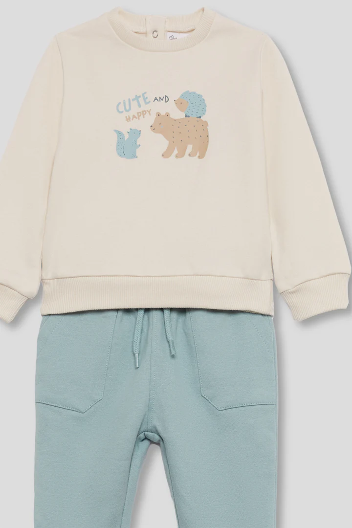💚Conjunto de dos piezas, sudadera y pantalón para niño de 3 meses a 6 años. Sudadera en color crudo con divertido estampado frontal de animalitos en tonos pastel y texto “Cute and happy”. Cuello redondo con canalé, puños elásticos y bajo acabado en rib. Pantalón a juego en color verde amazonas, con cintura elástica y bolsillos de parche delanteros. Confeccionado en felpa suave y cálida para un look cómodo y con estilo. Ideal para disfrutar del invierno con alegría.💚
