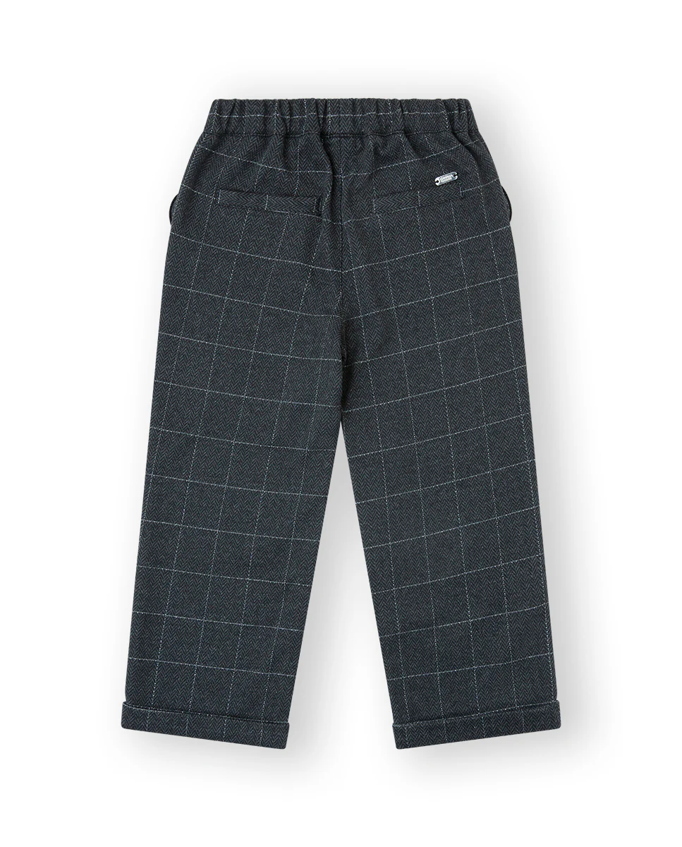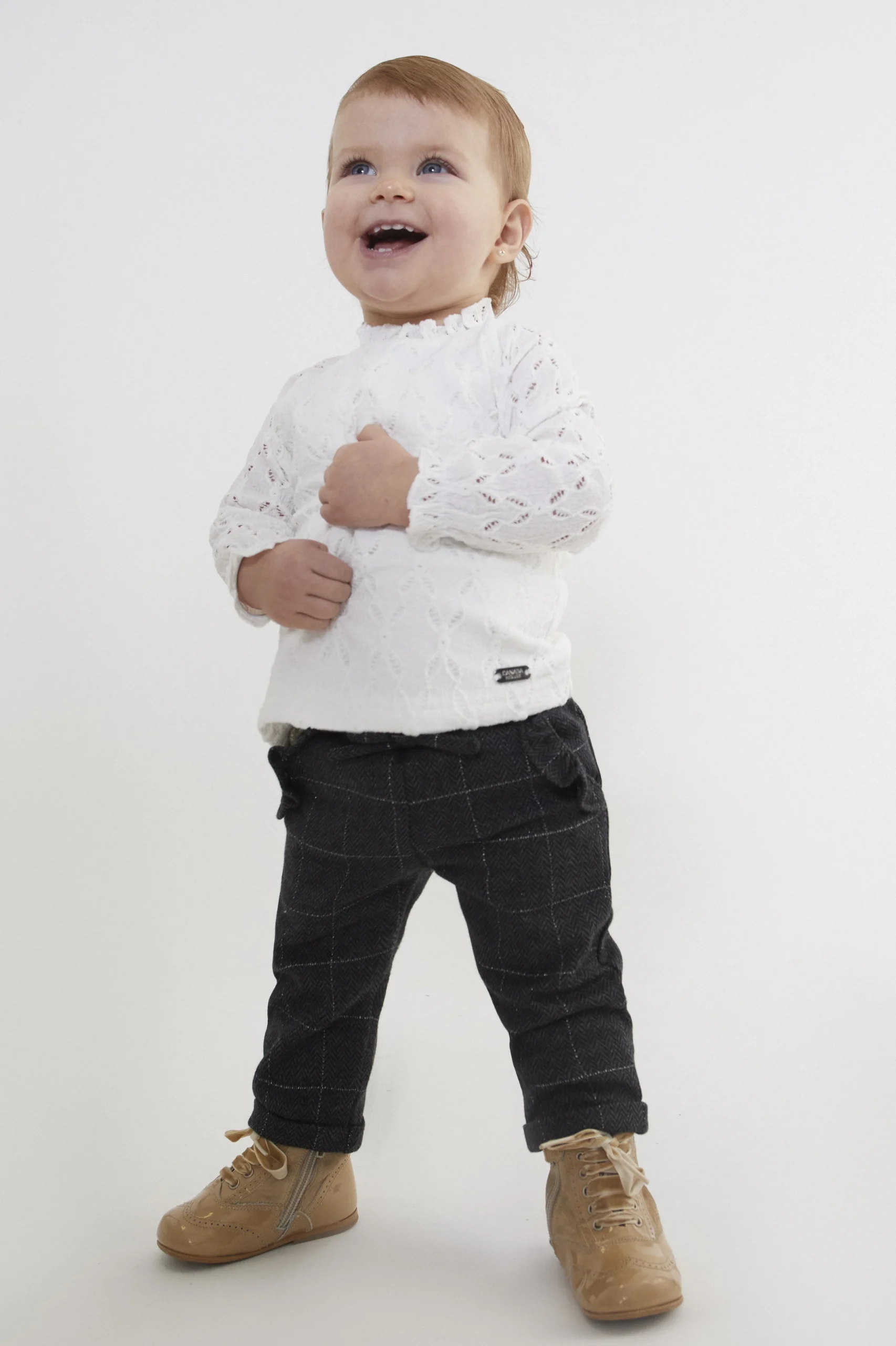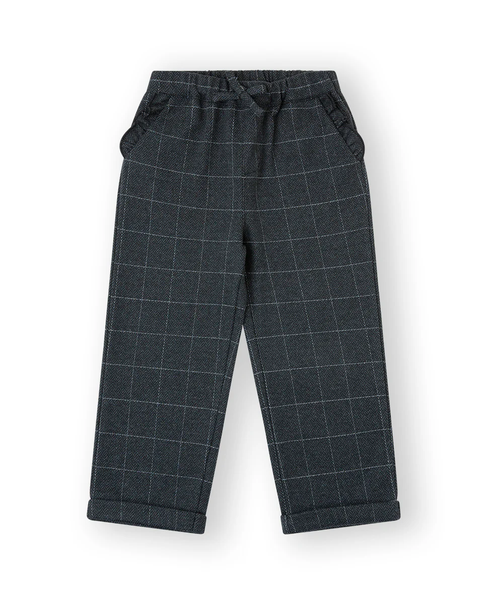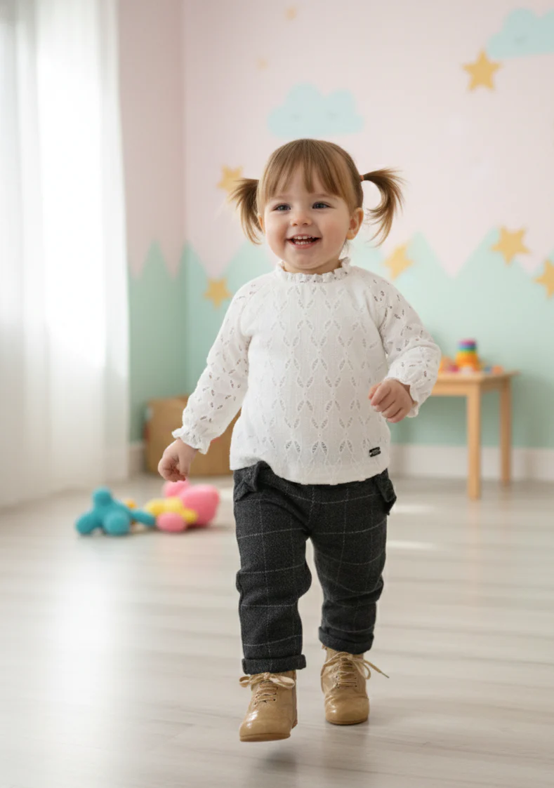 💚 Para niñas de 12 meses a 12 años,Conjunto de pantalón gris jacquard con cuadros en plata y camisa de encaje crema que le da un elegante toque vintage💚