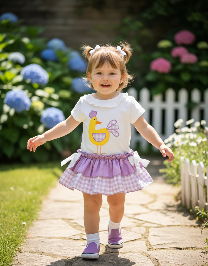 Conjunto de camiseta Blanca y Braguita lila con lazos.