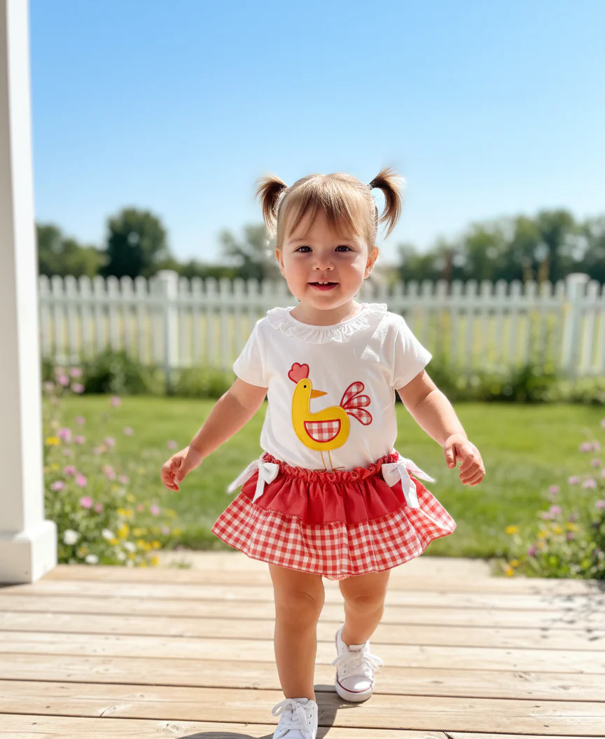 Conjunto de camiseta Blanca y Braguita roja con lazos.