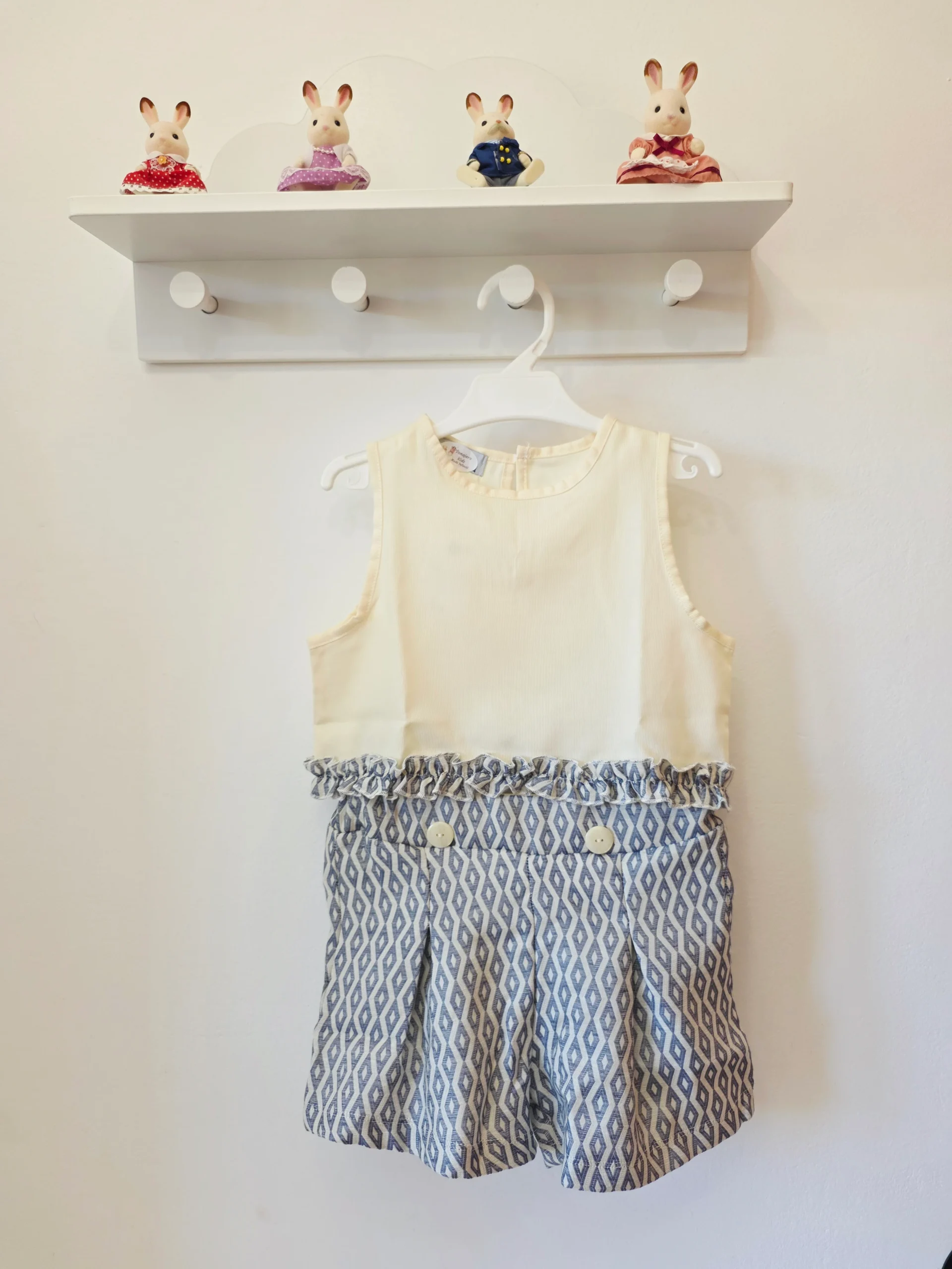 Conjunto con ese estampado geométrico tan clásico y los tonos azules y blancos, aquí tienes varias opciones según el estilo que quieras proyectar: