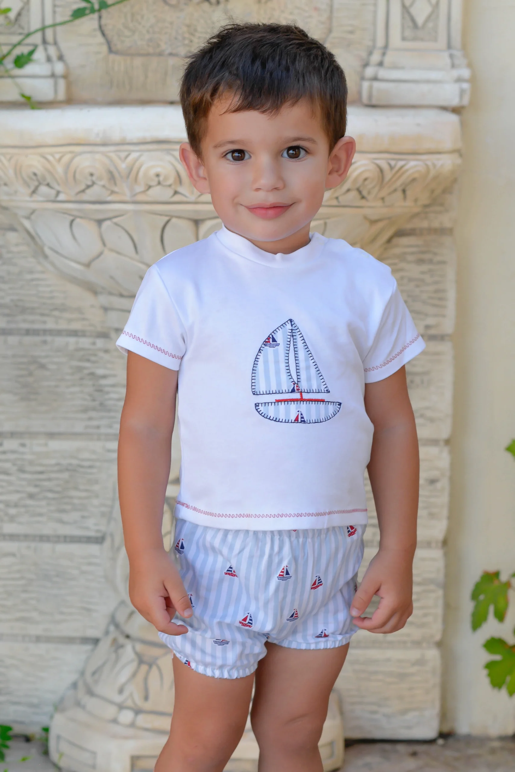 Conjunto de camiseta Blanca oso rojo y pantalón de cuadros rojos.