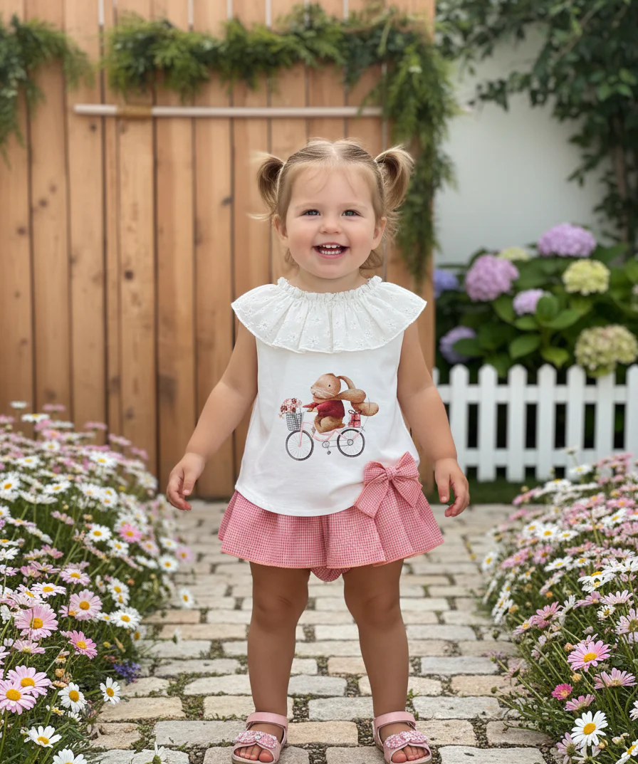 🐰 Conjunto camiseta y short de Flores y filo de encaja de Valentina