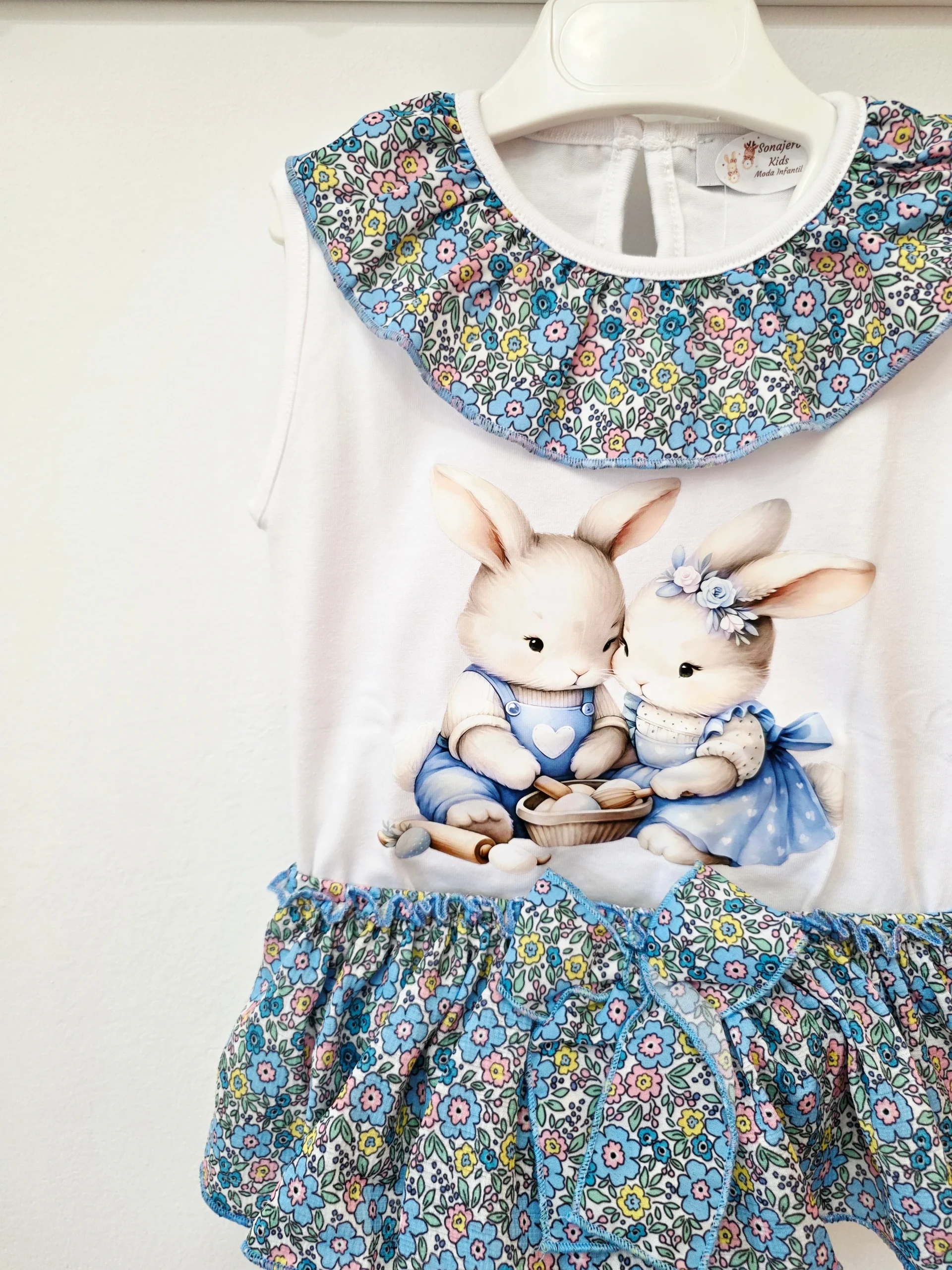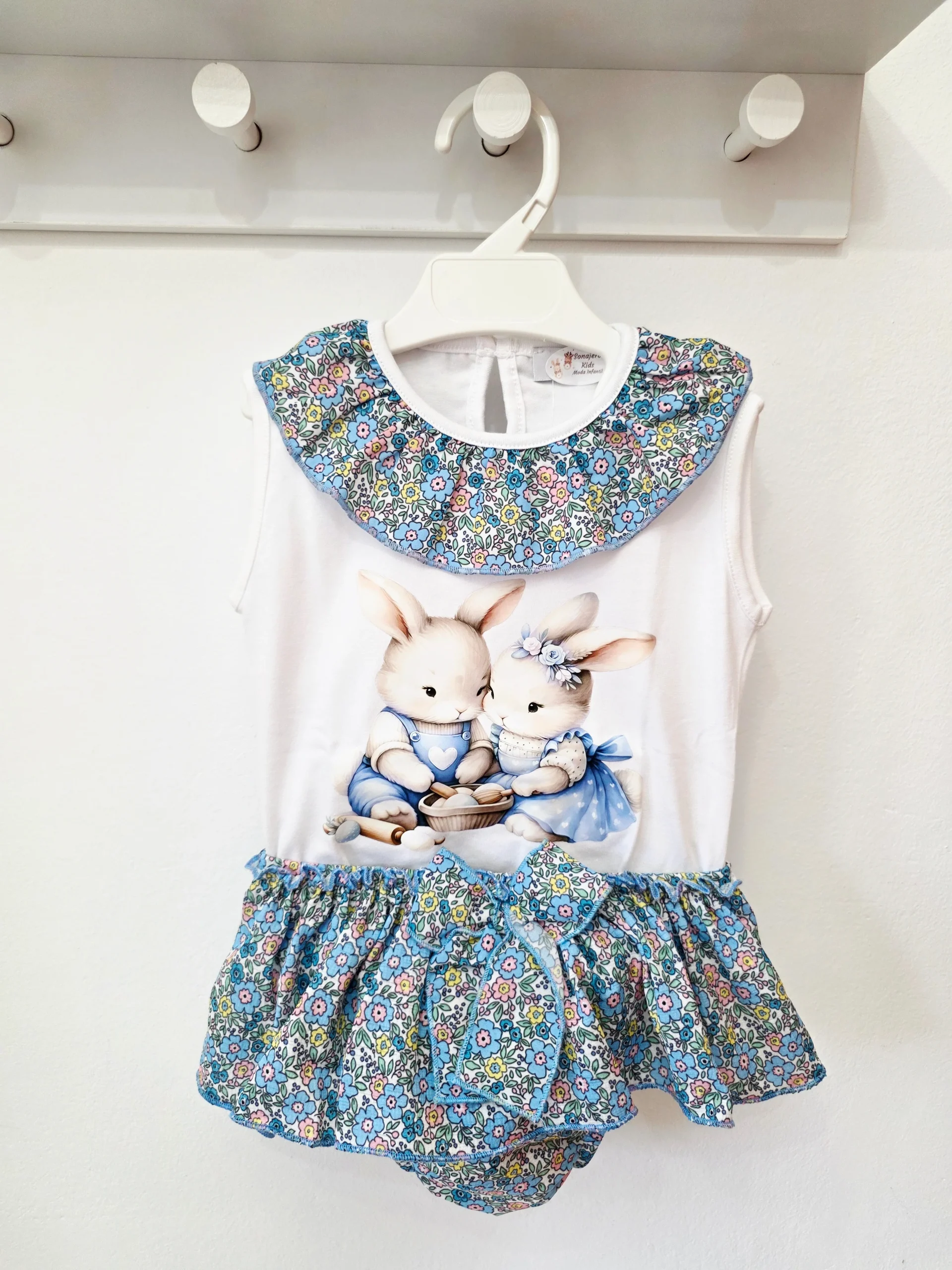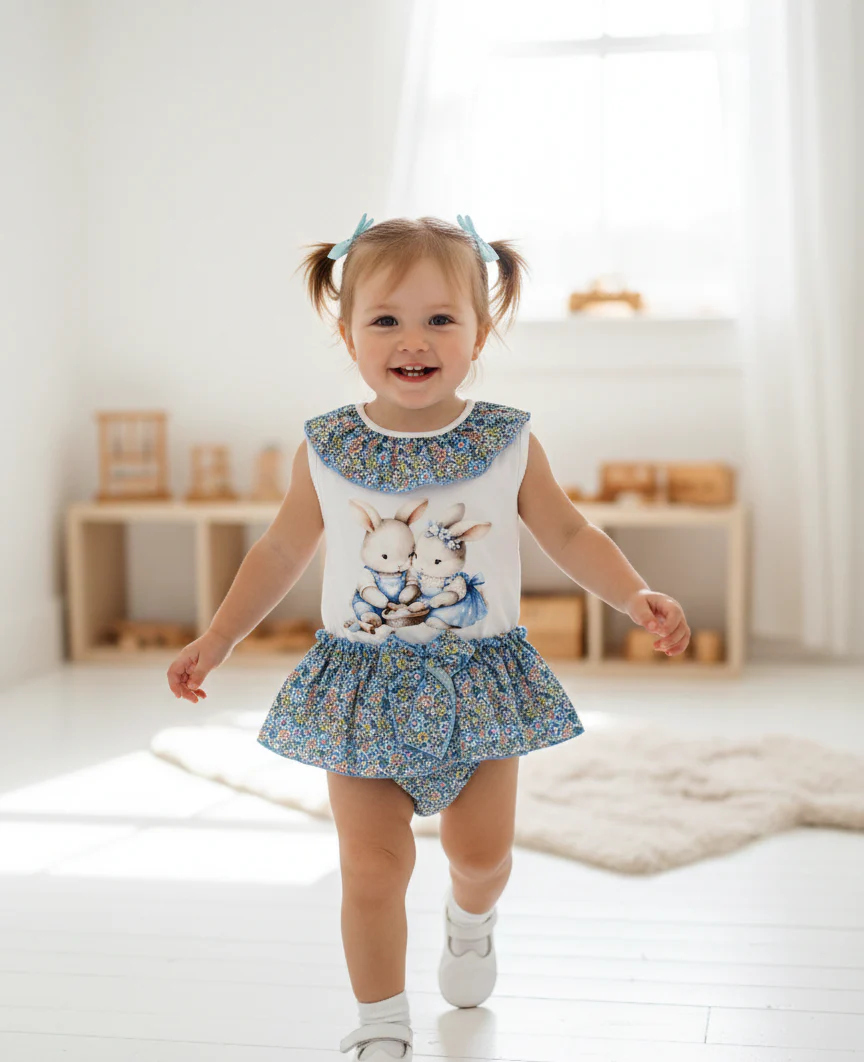 Conjunto de camiseta Blanca y Braguita con lazo.