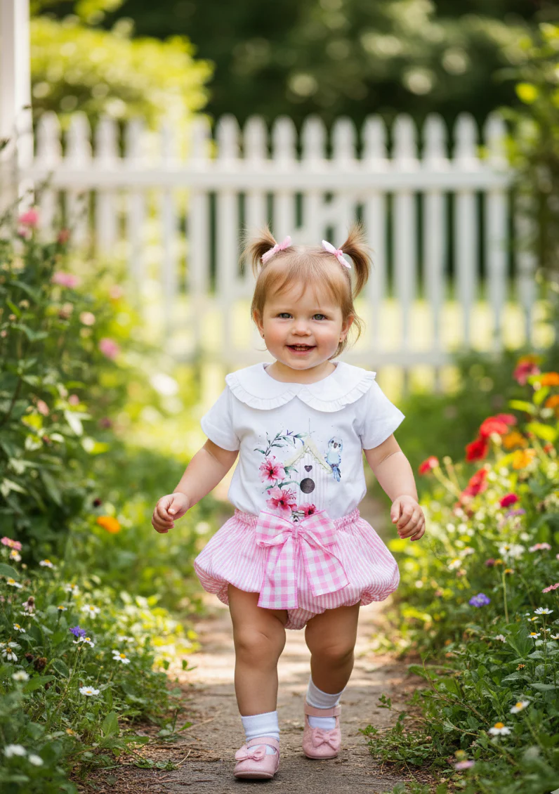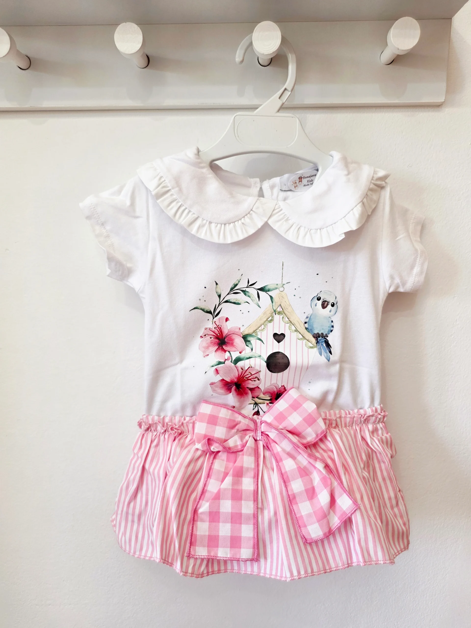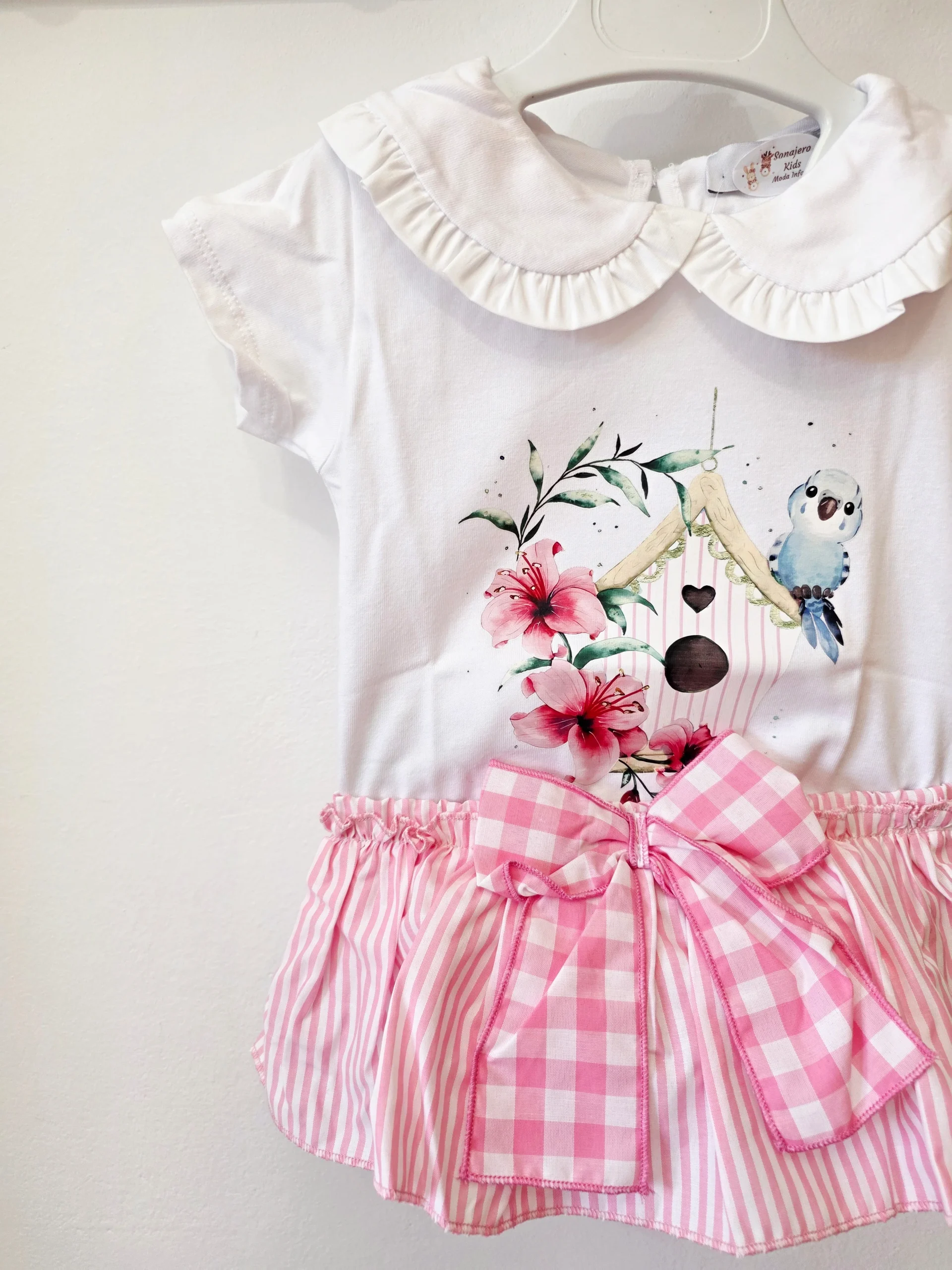 Conjunto de camiseta Blanca y Braguita con lazo.