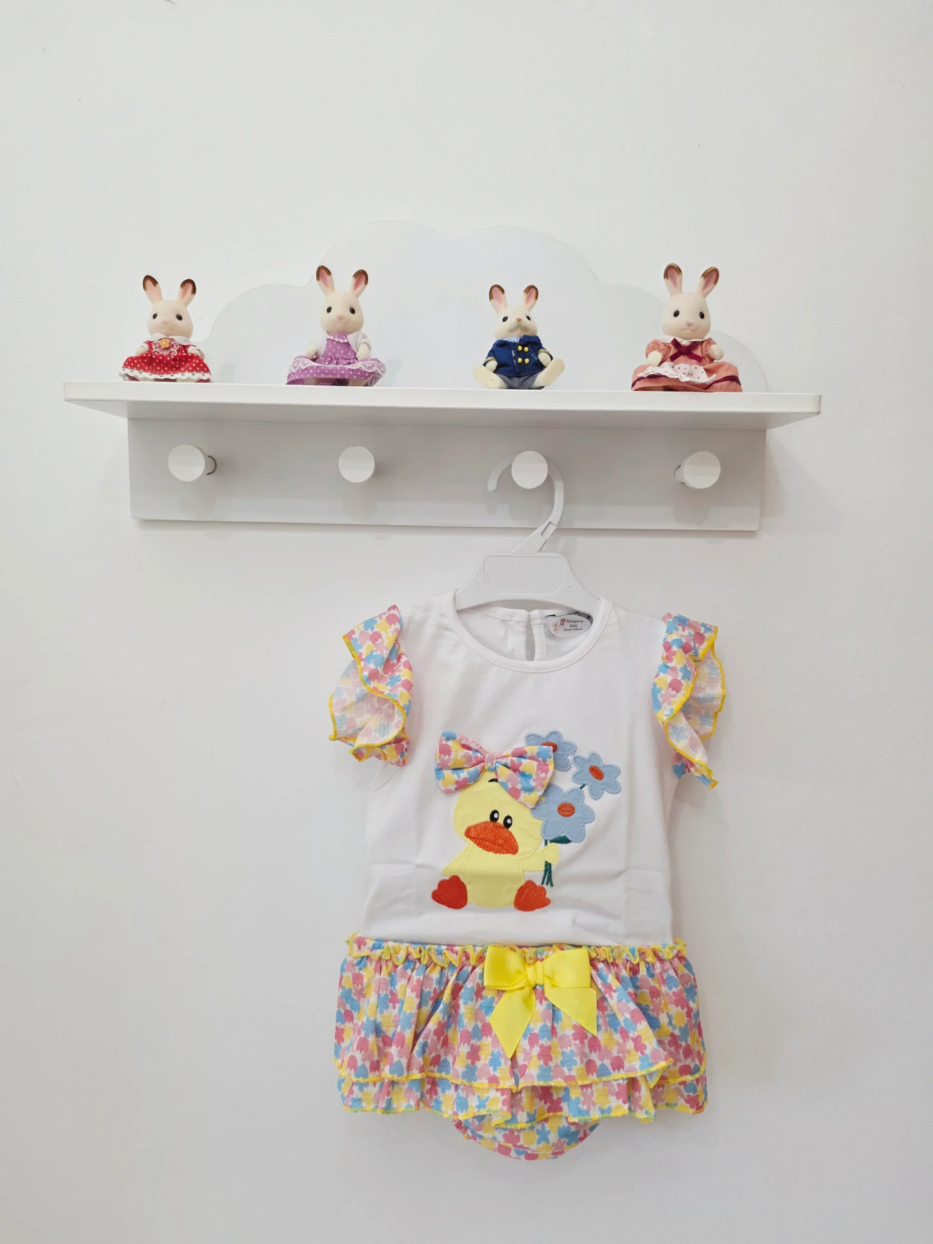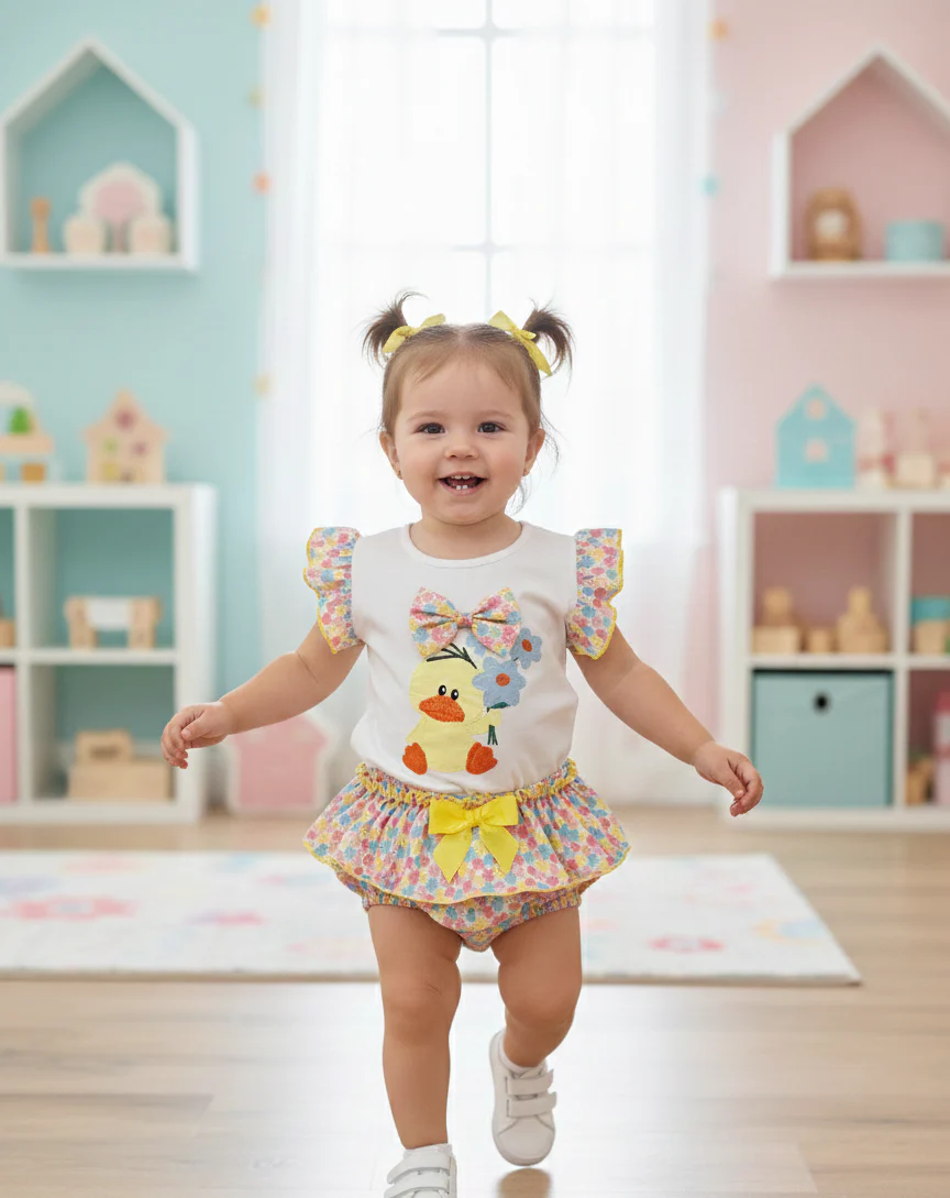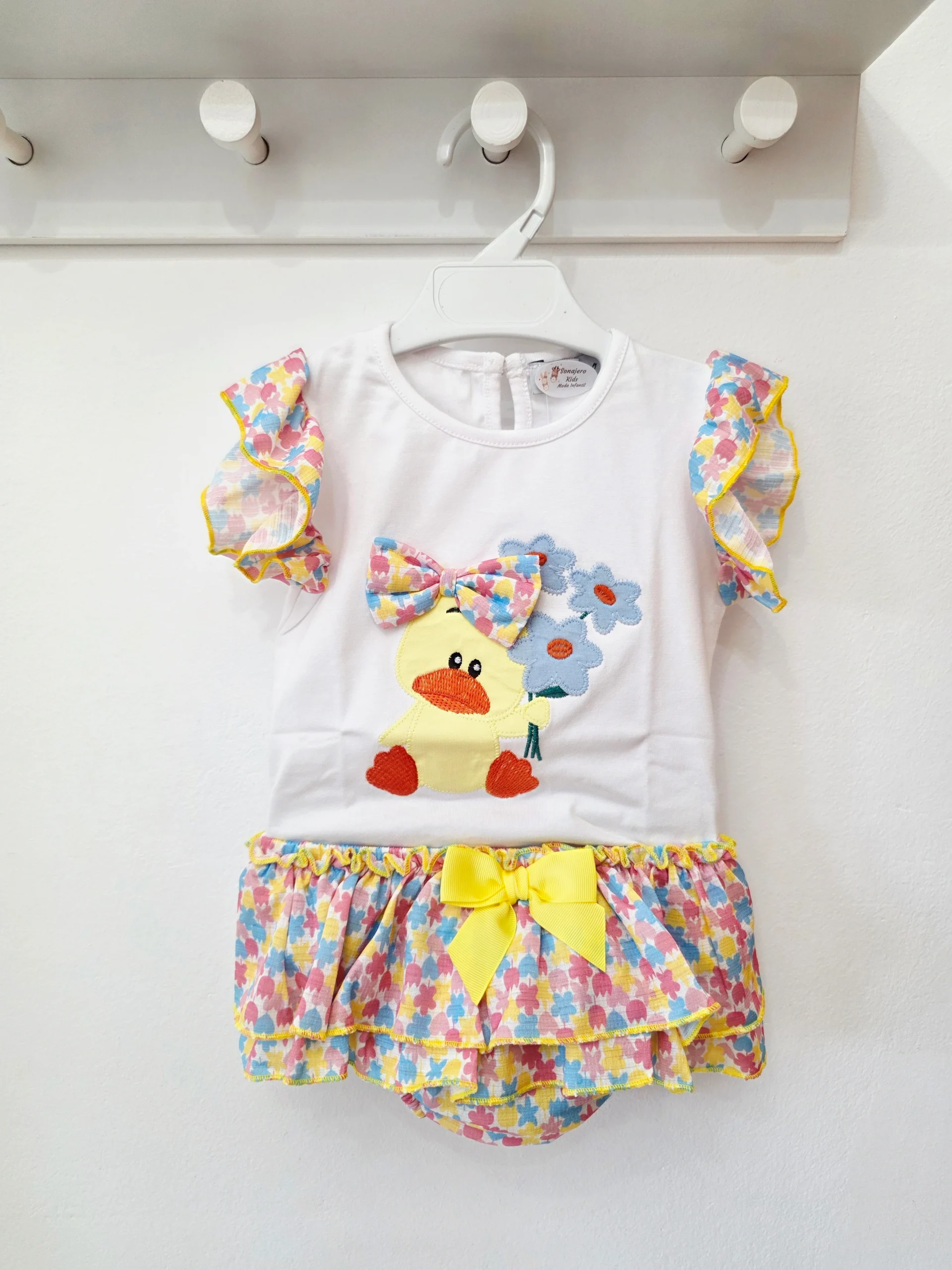 Conjunto de camiseta Blanca y Braguita con lazo.