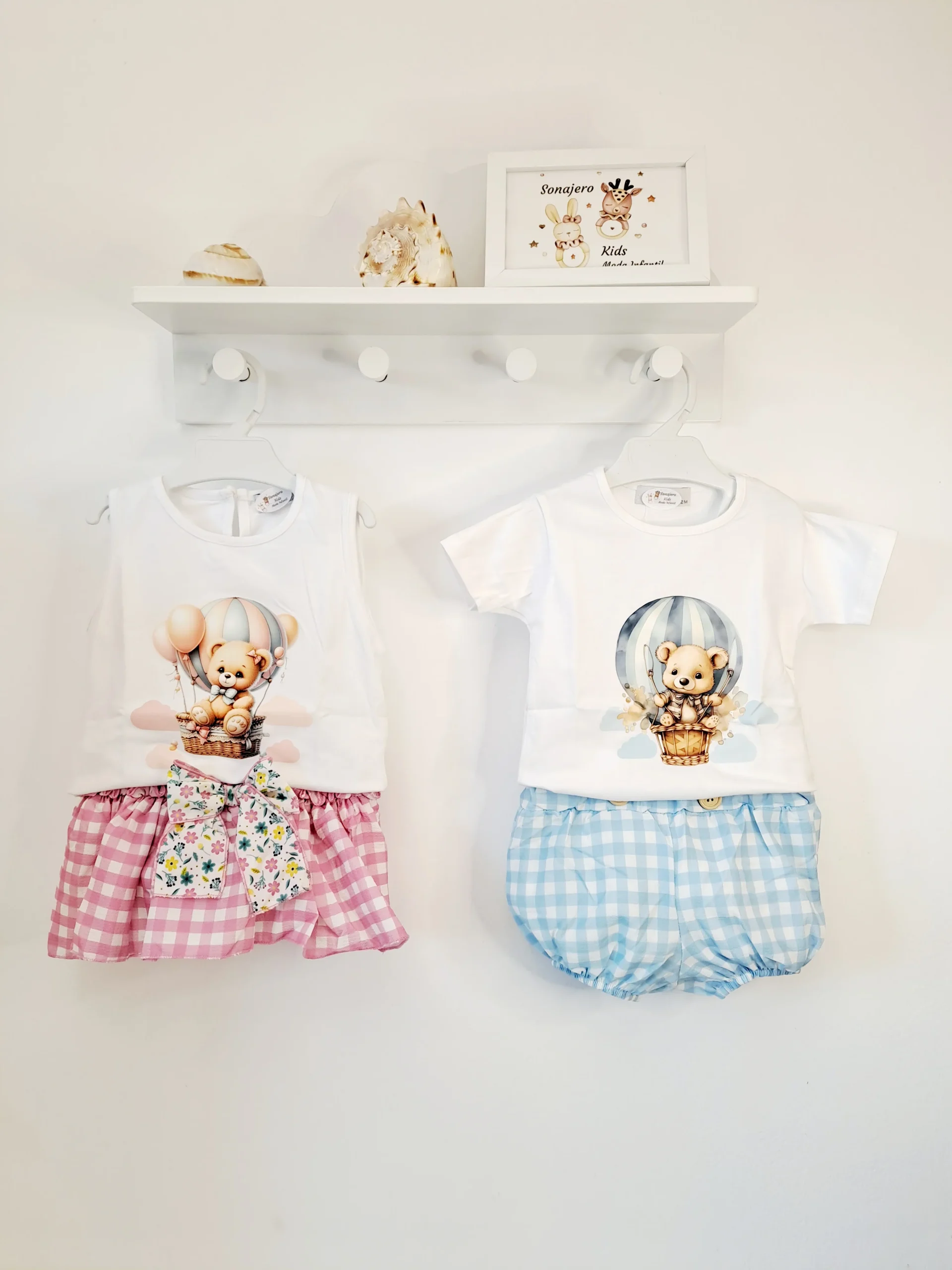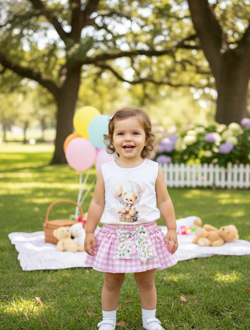 Conjunto de camiseta tirantes y braguita vichy con lazo.