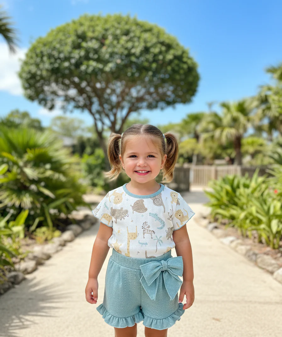 💚Conjunto pololo algodón camiseta con volantes y lazo con apertura trasera y braguita de con lazo .💚