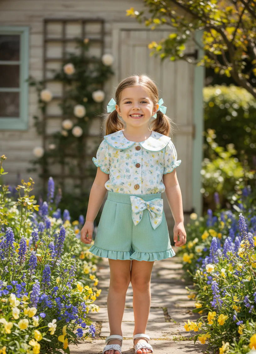 💚Vestido algodón con volantes en hombros moñita en la espalda.💚