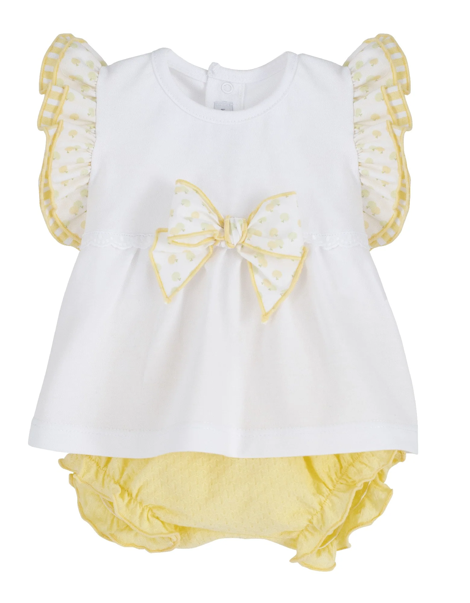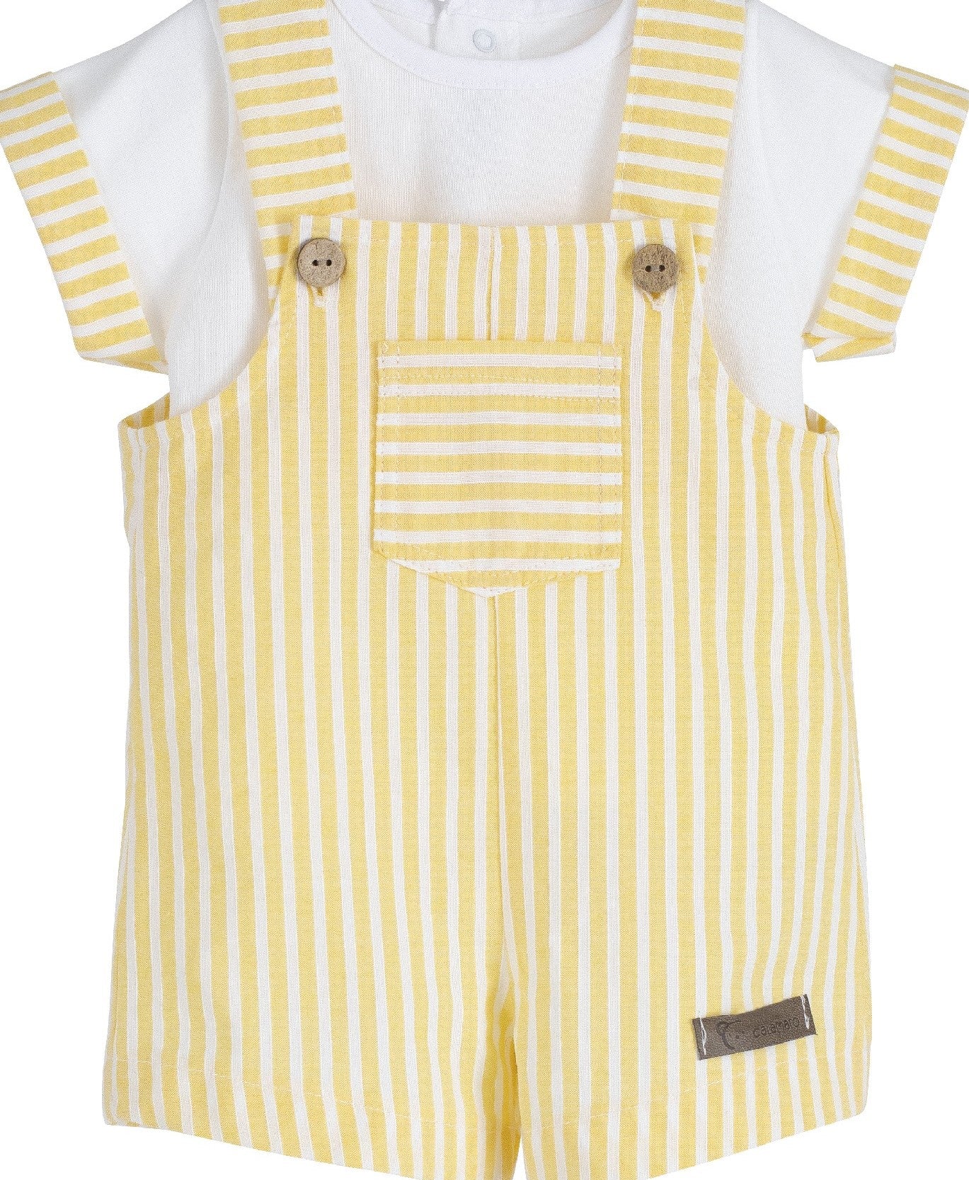 💛Conjunto peto algodón camiseta blanca y el filo amarilo de rallar y peto con bolsillo .💛