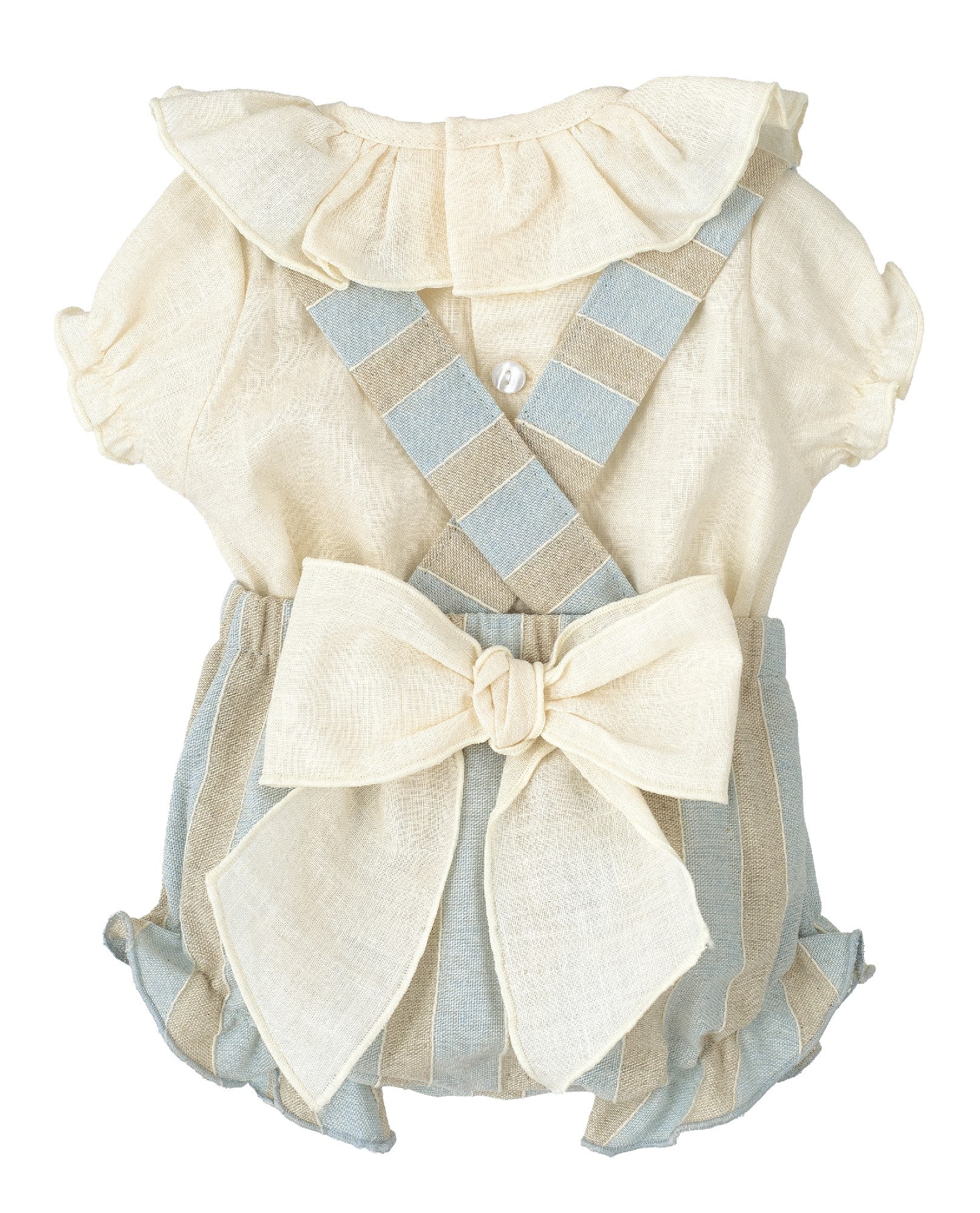 💚Conjunto peto algodón con camiseta con volantes y lazo y braguita filo fruncid .💚