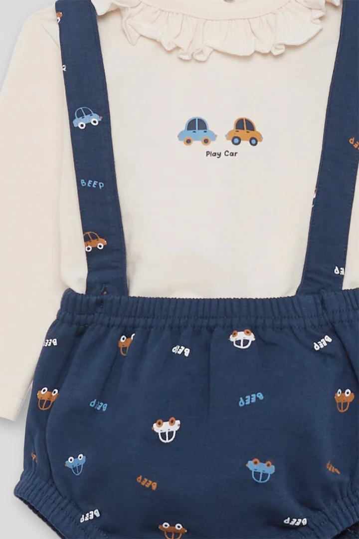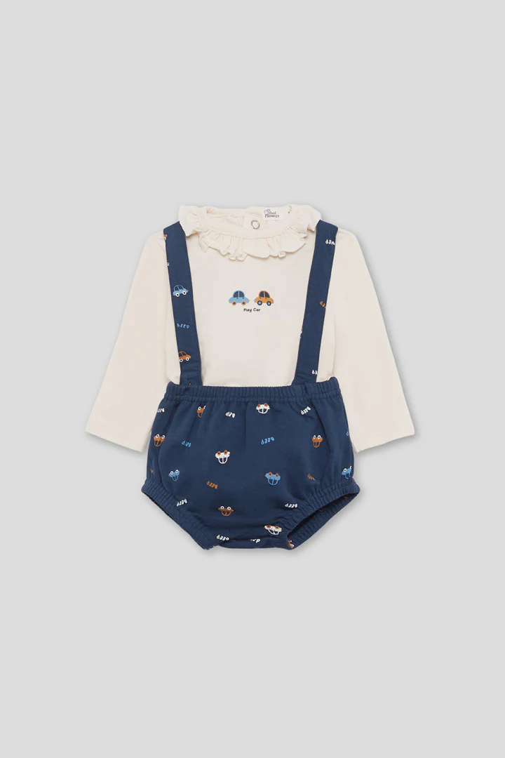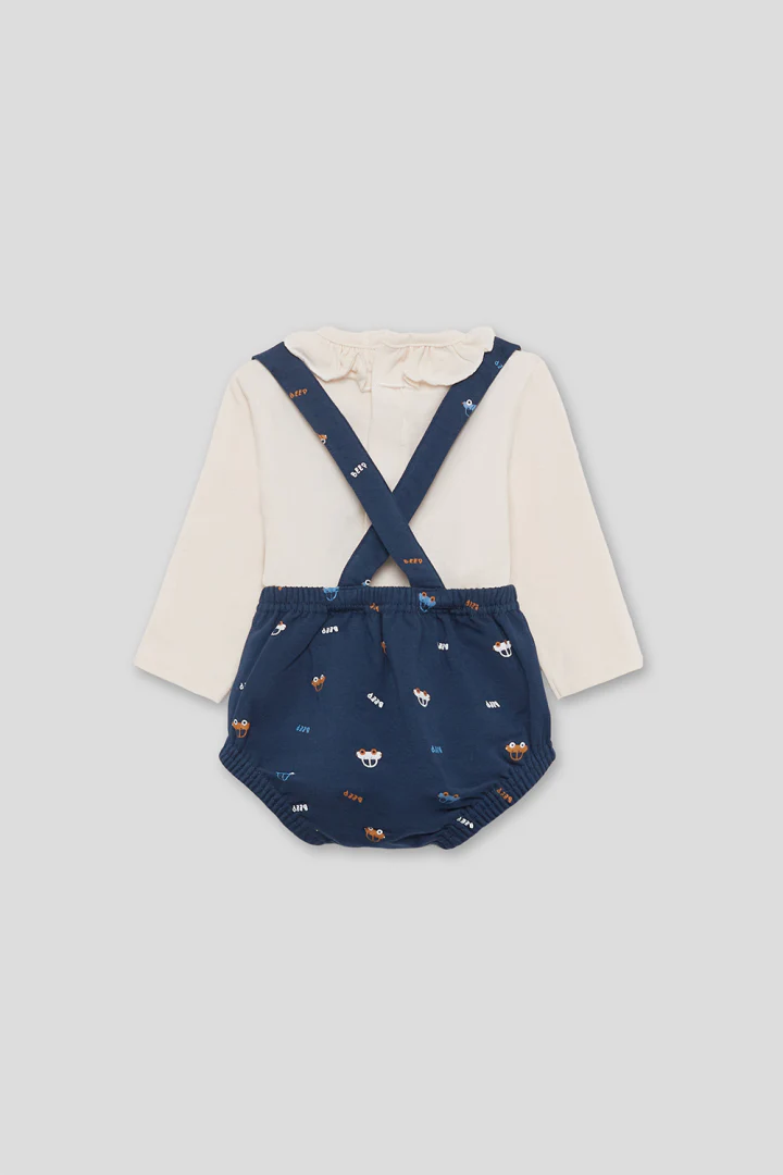 💚Ranita con tirantes para bebé niño de 3 a 24 meses. Ranita tipo peto en color azul noche, con divertido estampado de caritas de perritos distribuidas por toda la prenda. Los tirantes se cruzan en la espalda y se ajustan con botones de madera en la parte delantera. La cinturilla elástica proporciona un ajuste cómodo sin apretar, y las perneras fruncidas aportan un efecto abombado muy favorecedor. CombÃnala con una camiseta lisa o con cuello para completar un look encantador y práctico para el dÃa a dÃa.💚