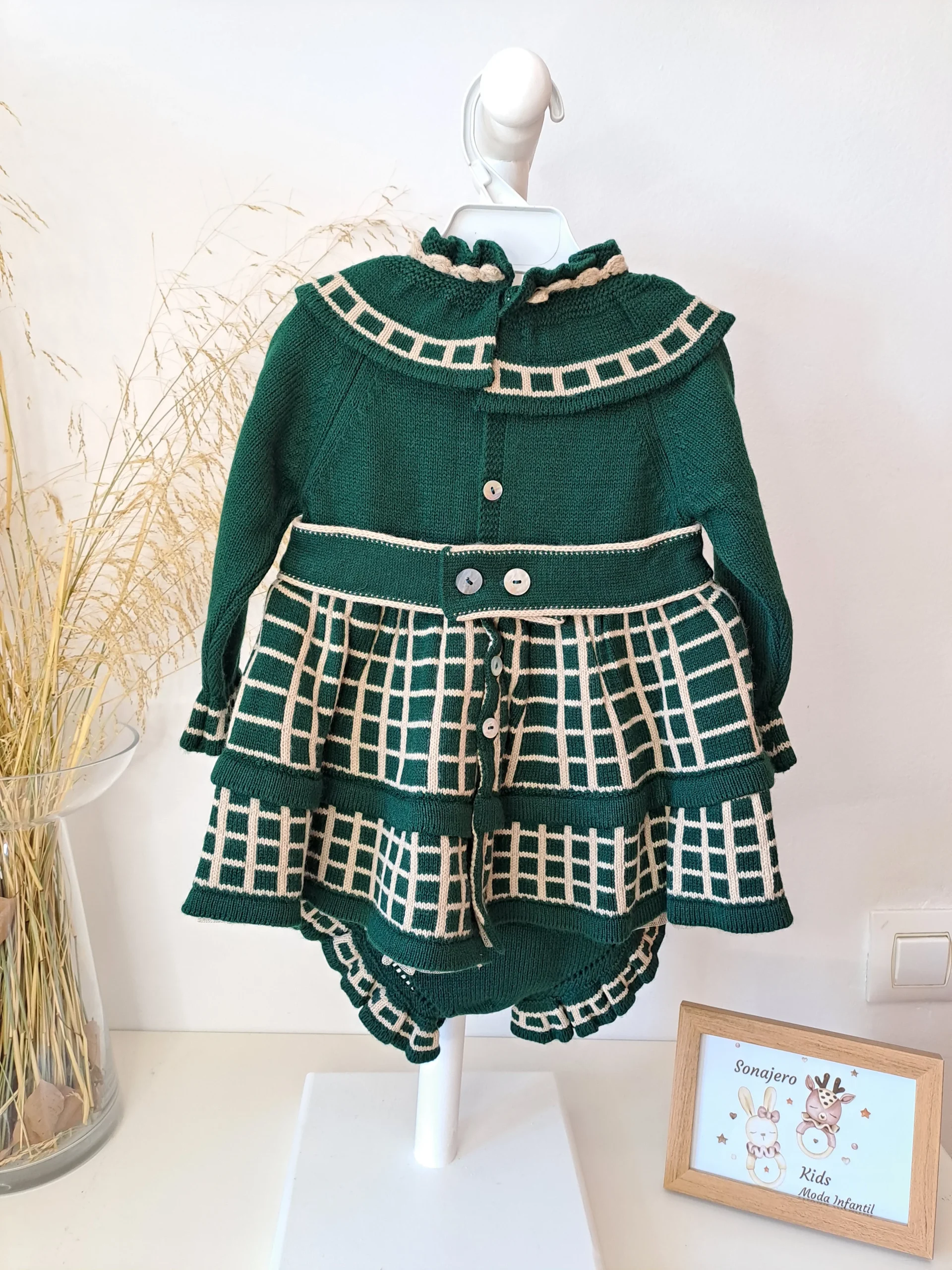 Braguita Verde con cuadros en beige en el filo de la braguita