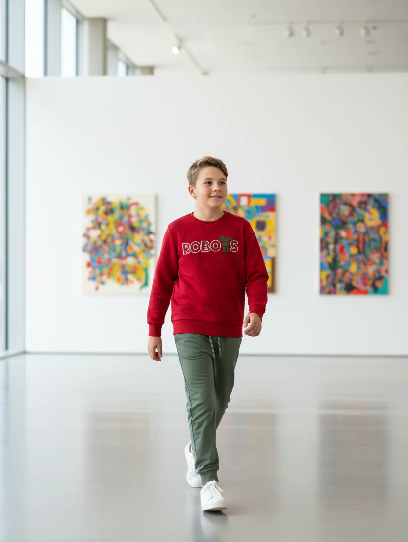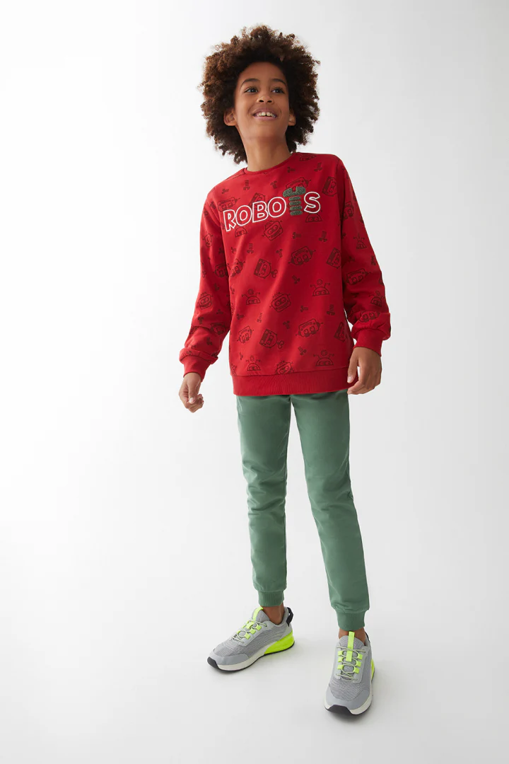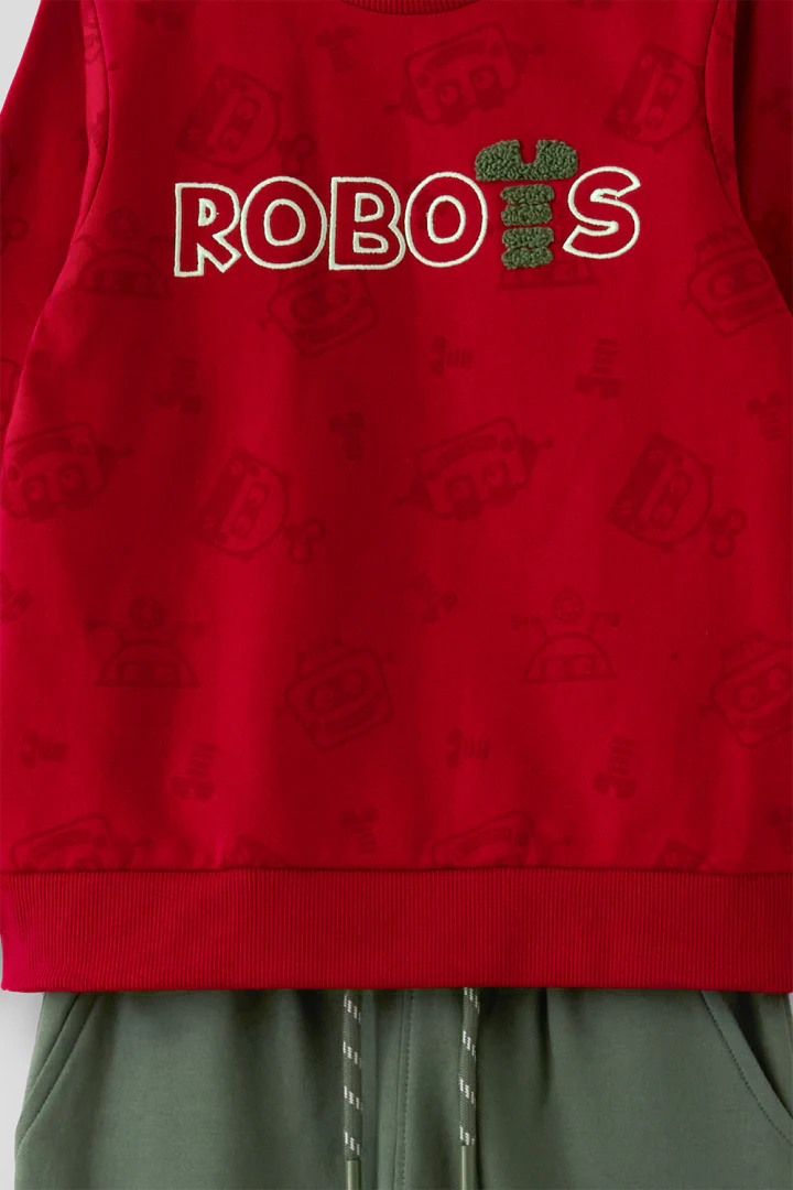 Conjunto para niño en color rojo y verde amazonas. Este vibrante conjunto incluye una sudadera roja con un divertido estampado de robots y la palabra «ROBOTS» en el pecho, ideal para los pequeños que aman la tecnología y la aventura. La sudadera está confeccionada en un tejido suave y resistente, ofreciendo la combinación perfecta de comodidad y durabilidad para el uso diario. El pantalón en color verde amazonas complementa perfectamente la sudadera, proporcionando un ajuste cómodo gracias a su cintura elástica y puños en los tobillos que aseguran un look moderno y estilizado. Este conjunto es ideal para cualquier ocasión, desde días de escuela hasta tardes de juego, asegurando que tu hijo se sienta cómodo y a la moda en todo momento. Haz que tu pequeño luzca encantador con este conjunto rojo y verde amazonas, una combinación que ofrece estilo y funcionalidad. Fácil de lavar y mantener, este conjunto es una excelente adición al guardarropa de cualquier niño. Disponible en tallas para niños de 2 a 16 años, añade este alegre conjunto a la colección de tu hijo y dale un look lleno de diversión y color.