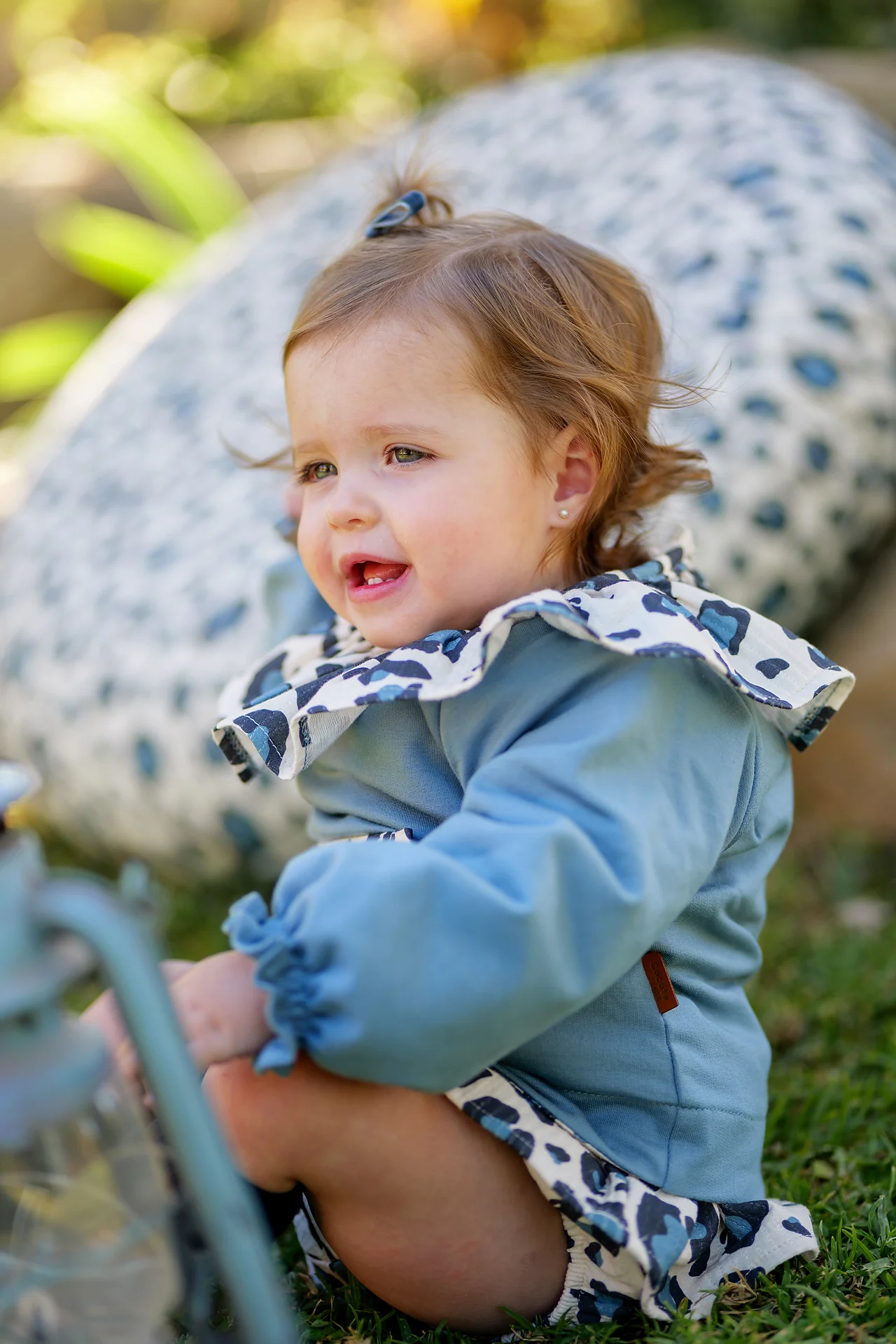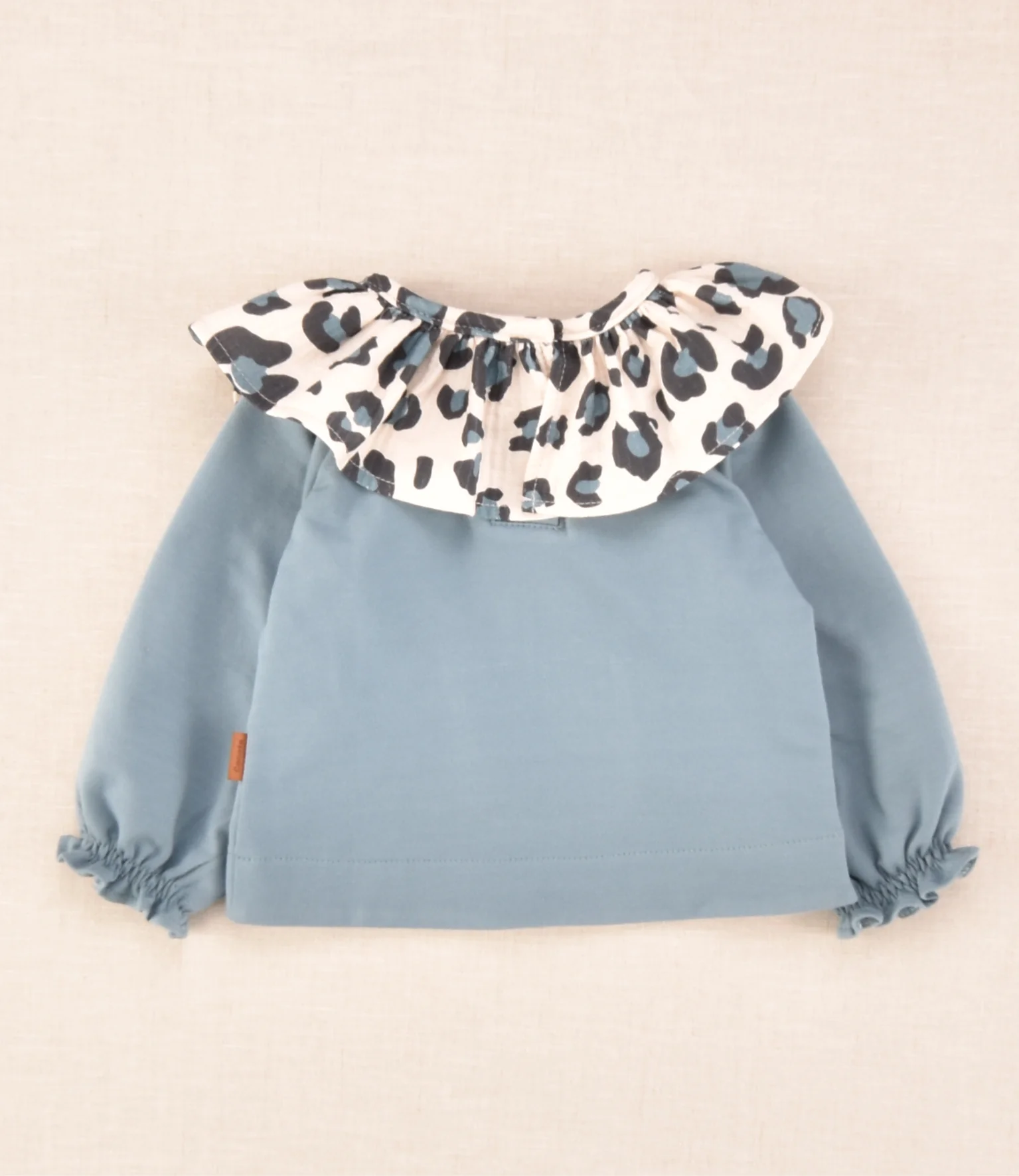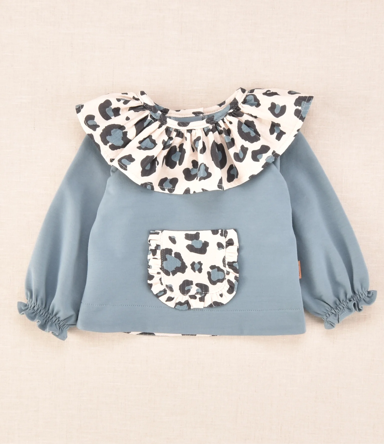 Conjunto sudadera con volante y braguita estampado animal print en azul y negro