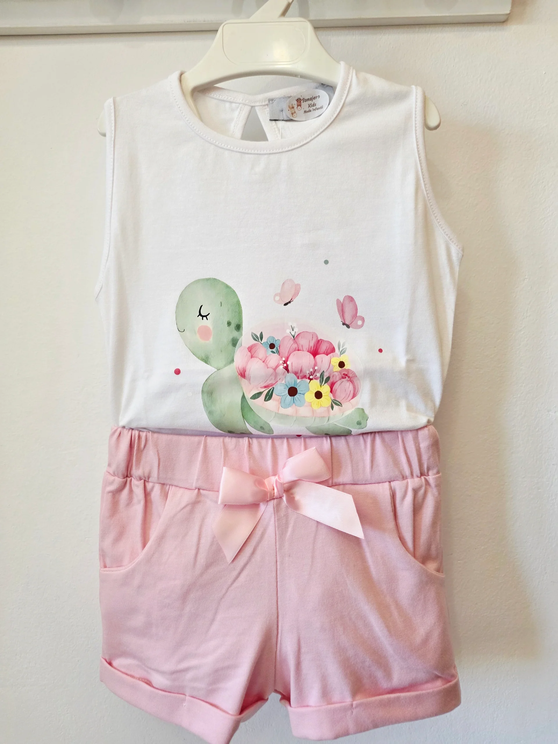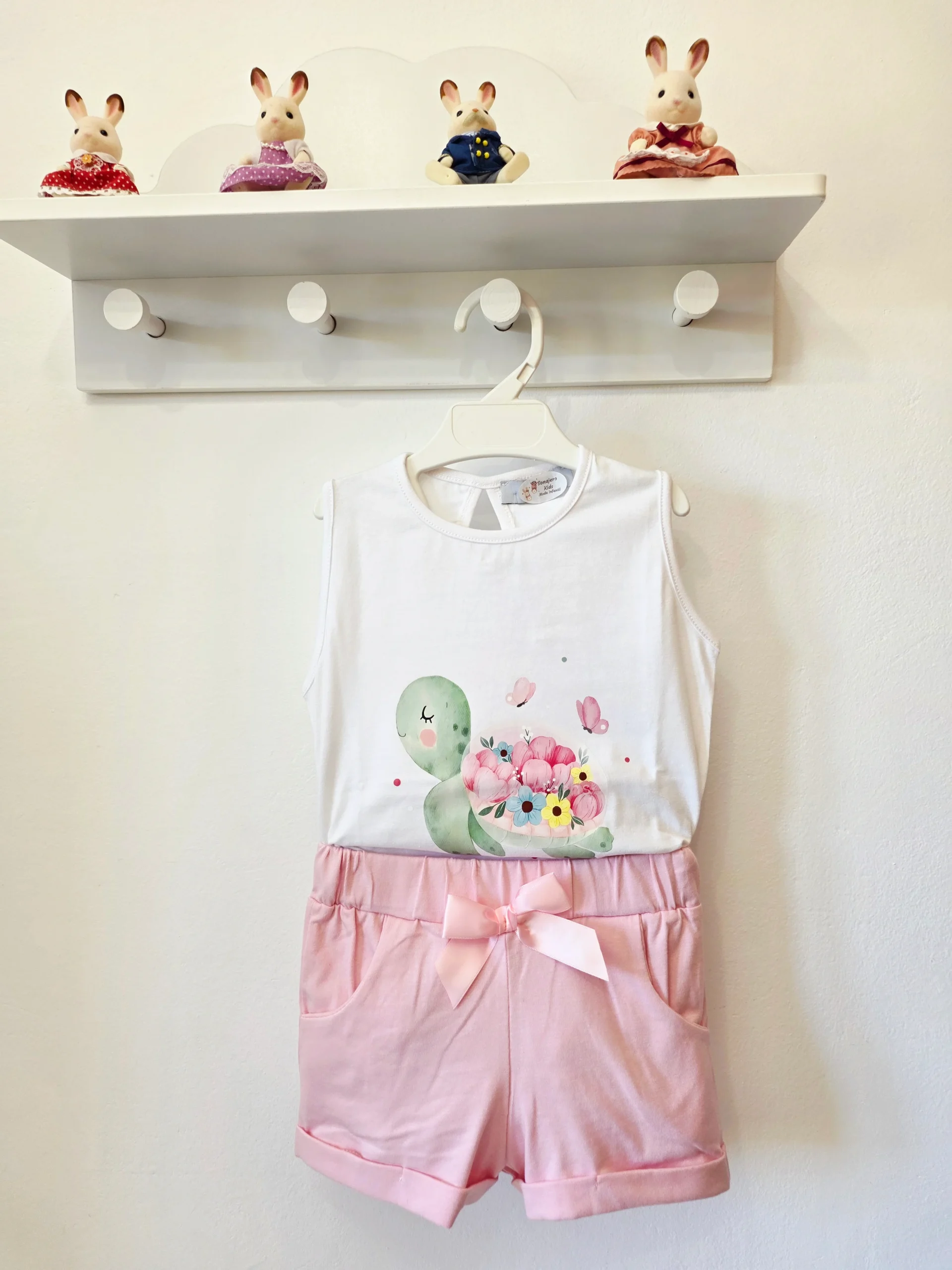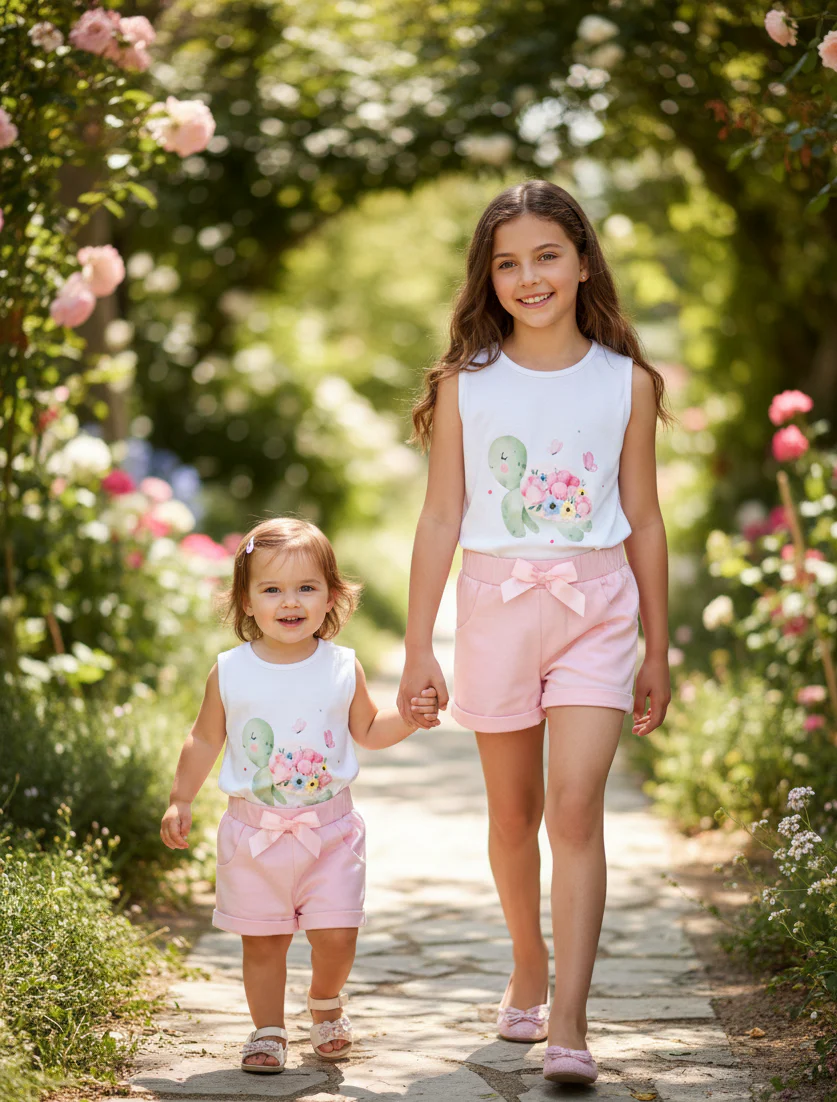 Este conjunto infantil tiene un estilo dulce, veraniego y delicado, ideal para un look casual pero cuidado. Se compone de dos piezas coordinadas: