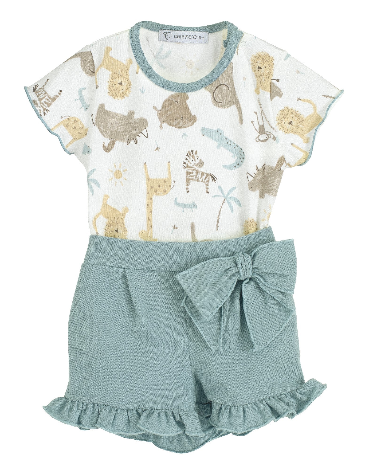 💚Este conjunto infantil tiene un aire muy dulce y veraniego, destacando por su combinación de texturas y detalles cuidados en tonos blanco y azul empolvado.