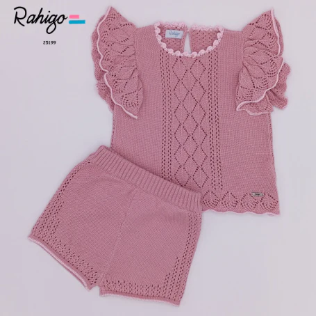🎀Conjunto Short de punto maquillaje con volantes en los hombros de punto y rematado con rosa claro en los filos