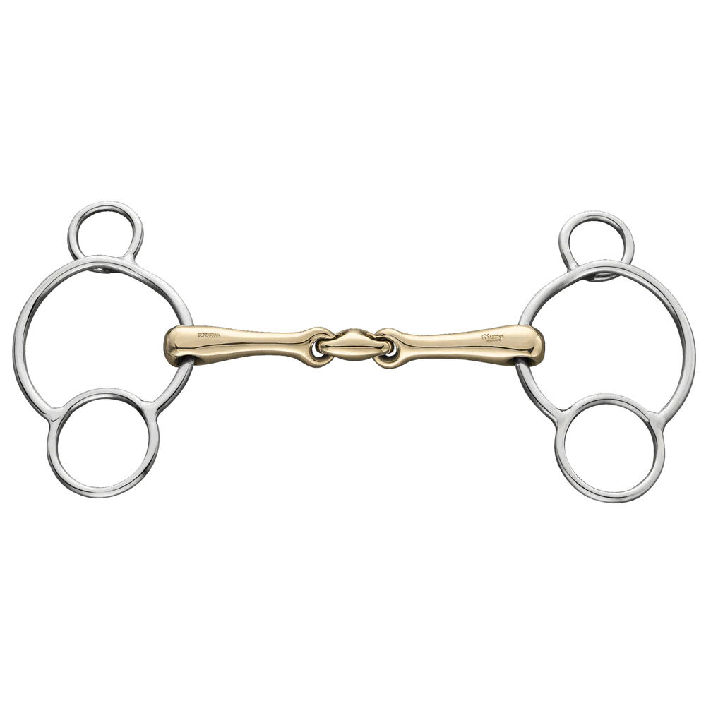 Los 3 anillos permiten 4 diferentes formas de atar las riendas al bocado, lo que lo hace sumamente versátil y extremadamente popular en jinetes de salto, ya que proporciona más control cuando se necesita. Dependiendo de la argolla en la que se atan las riendas, cambia el nivel de efecto palanca al usar las riendas.