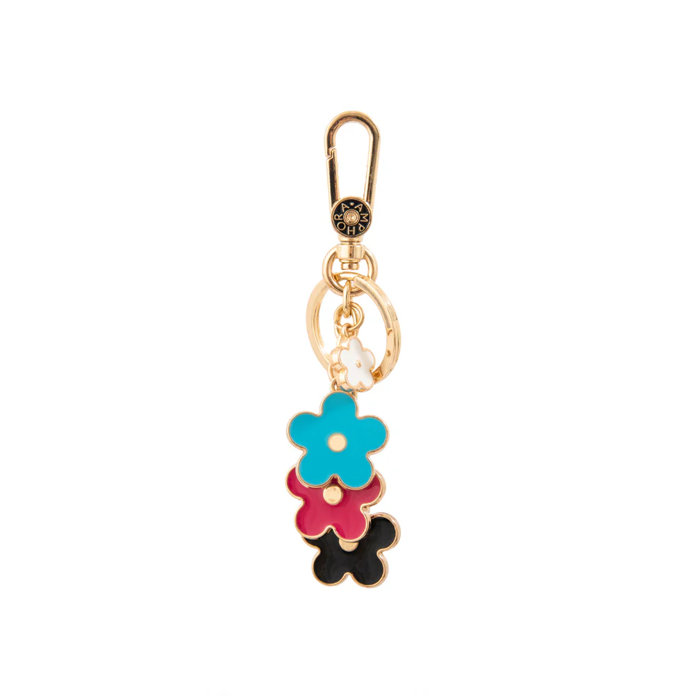 Dale personalidad a tu día a día con el llavero Florence, un accesorio elegante con colgantes florales multicolor y acabado metálico dorado. Perfecto como detalle de moda o regalo especial.