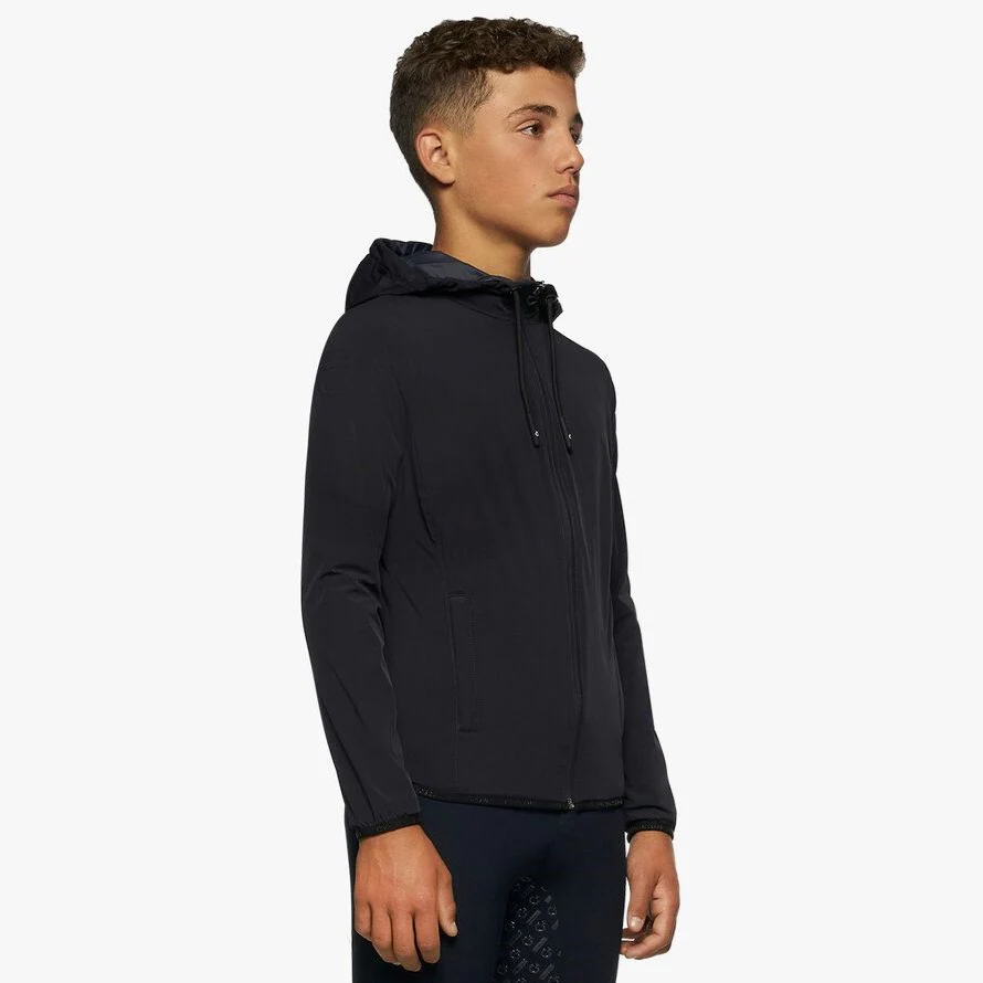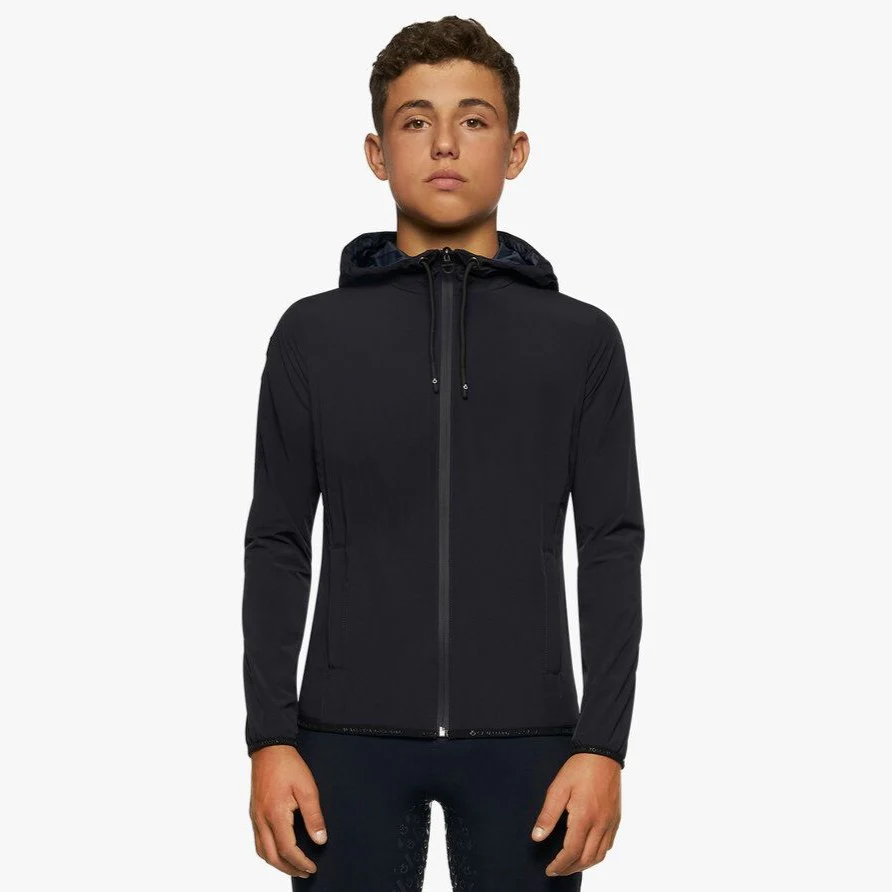 - Viene con capucha y un práctico frontal cremallera