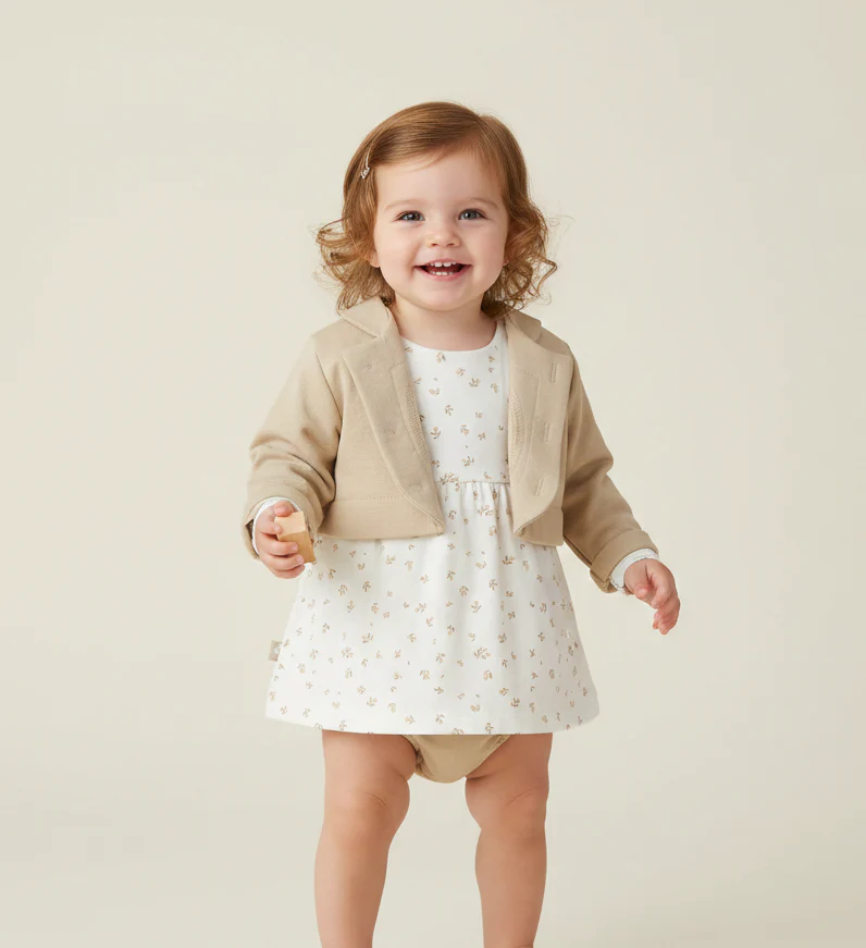 Tejido: Parece ser de un punto estructurado o paño ligero, lo que le da cuerpo y elegancia sin restarle movilidad a la niña.