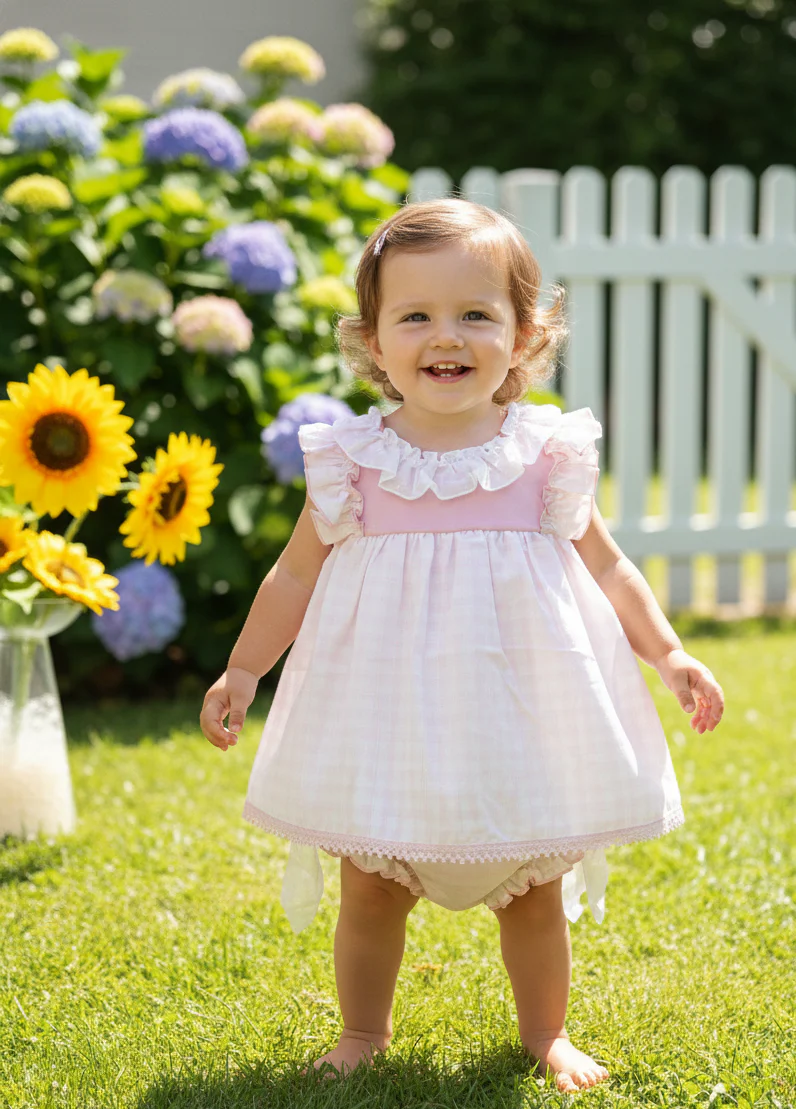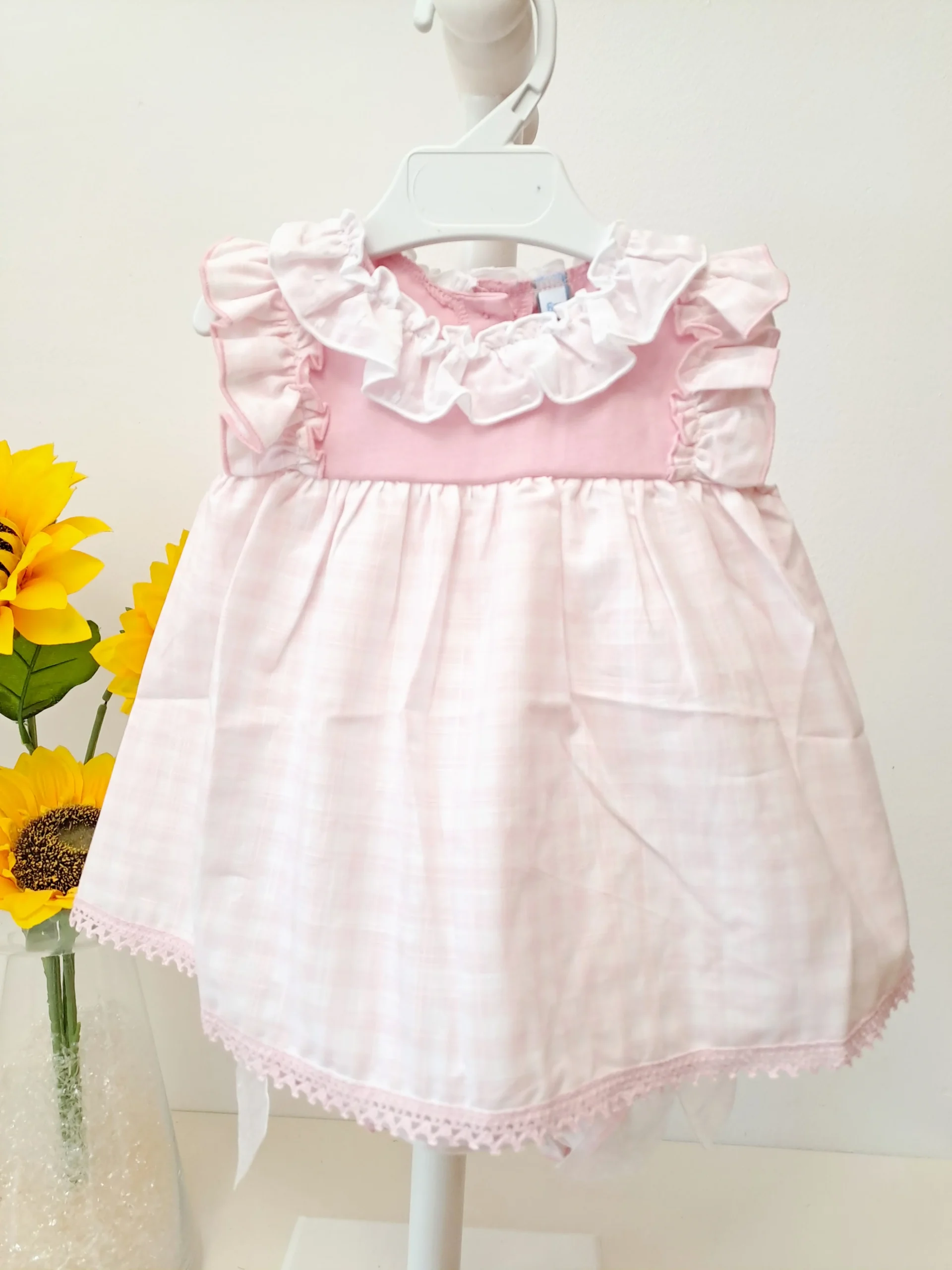Jesusito de cuadro vichy rosa y blanco con puentilla.
