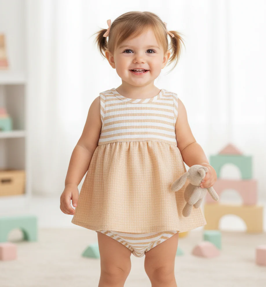 Pelele de Dos Piezas «Rayas Natural» – Estilo y Dulzura