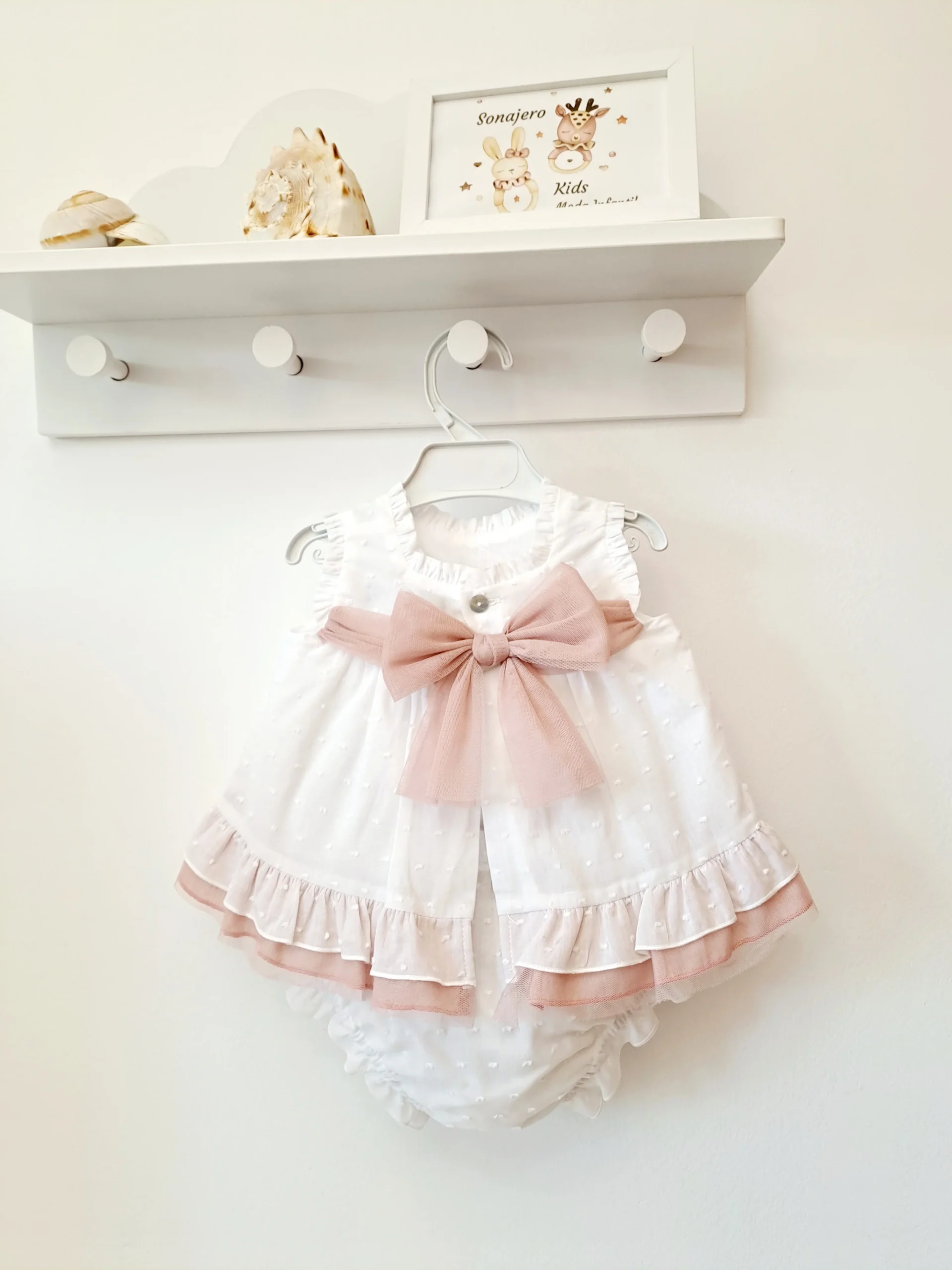 💚Jesusito de plumeti blanco y tull rosa maquillaje y braguita de plumeti .💚