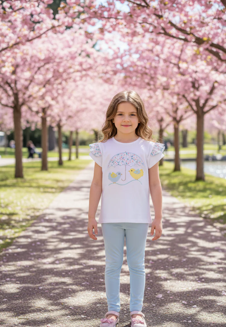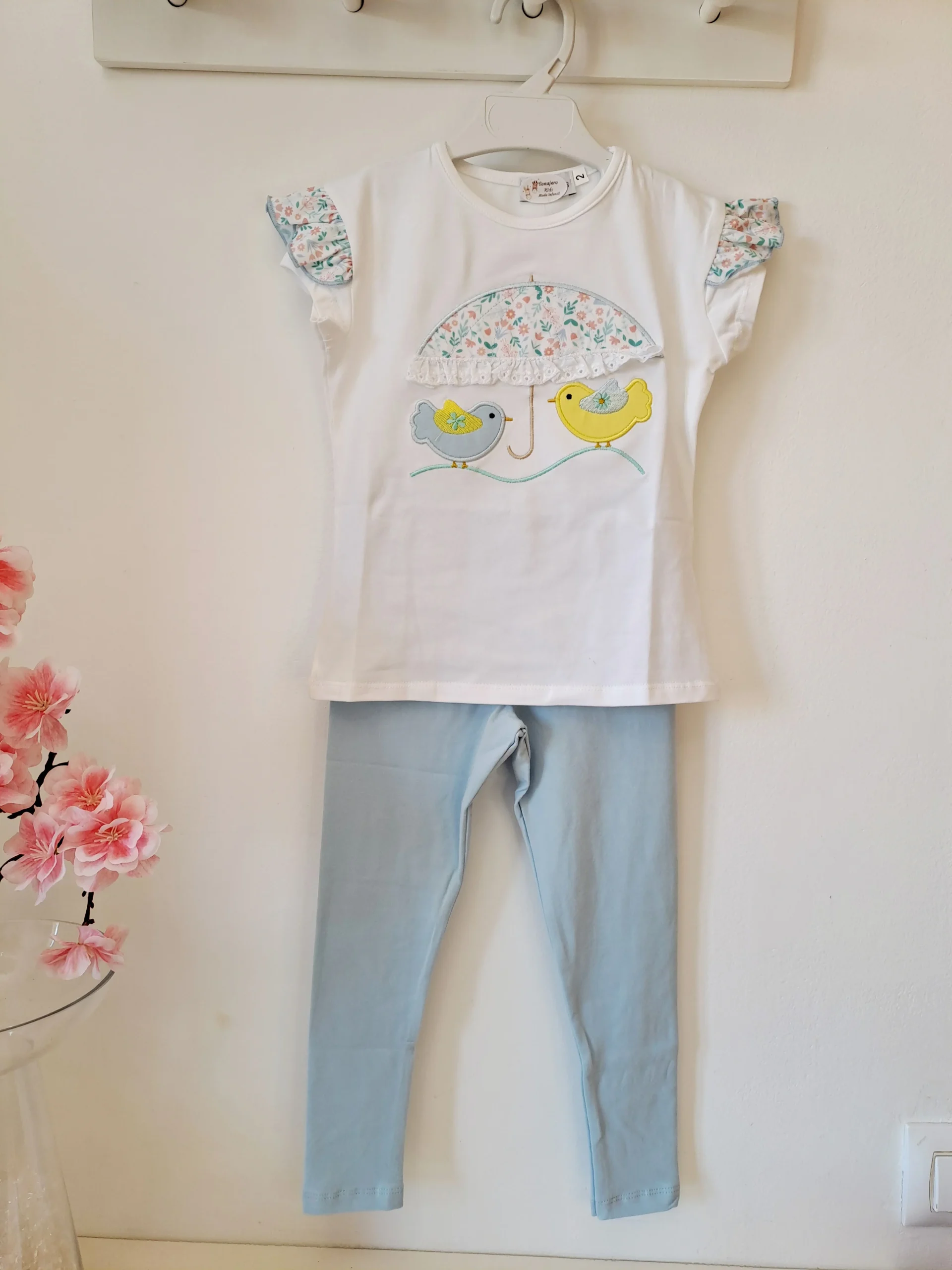 Conjunto de leggins y camiseta con volante en el hombro.