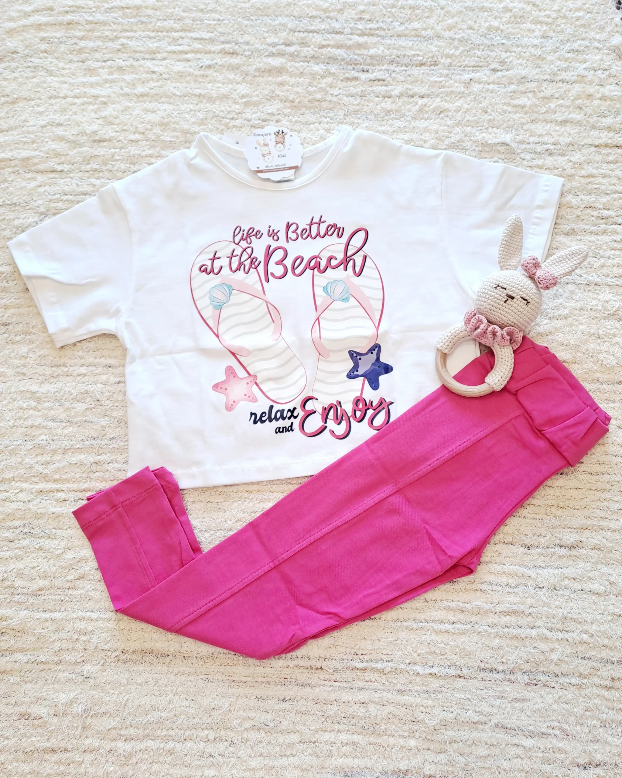 🎀 Otro conjunto que nos encanta. Camiseta ancha con legging fucsia 🎀