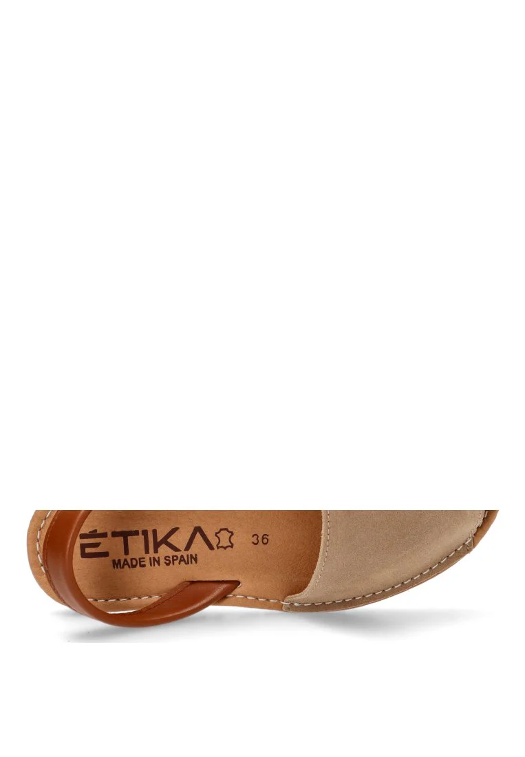 ¿Buscas unas sandalias atemporales, increÃblemente cómodas y versátiles para complementar tu estilo este verano? Las Menorquinas Plana BIANCA 10080 de ETIKA para mujer, en un sofisticado color ARENA, son la elección ideal. Su diseño clásico de menorquina, con la inconfundible calidad de la piel, las hace perfectas para un estilo diario elegante y effortless.