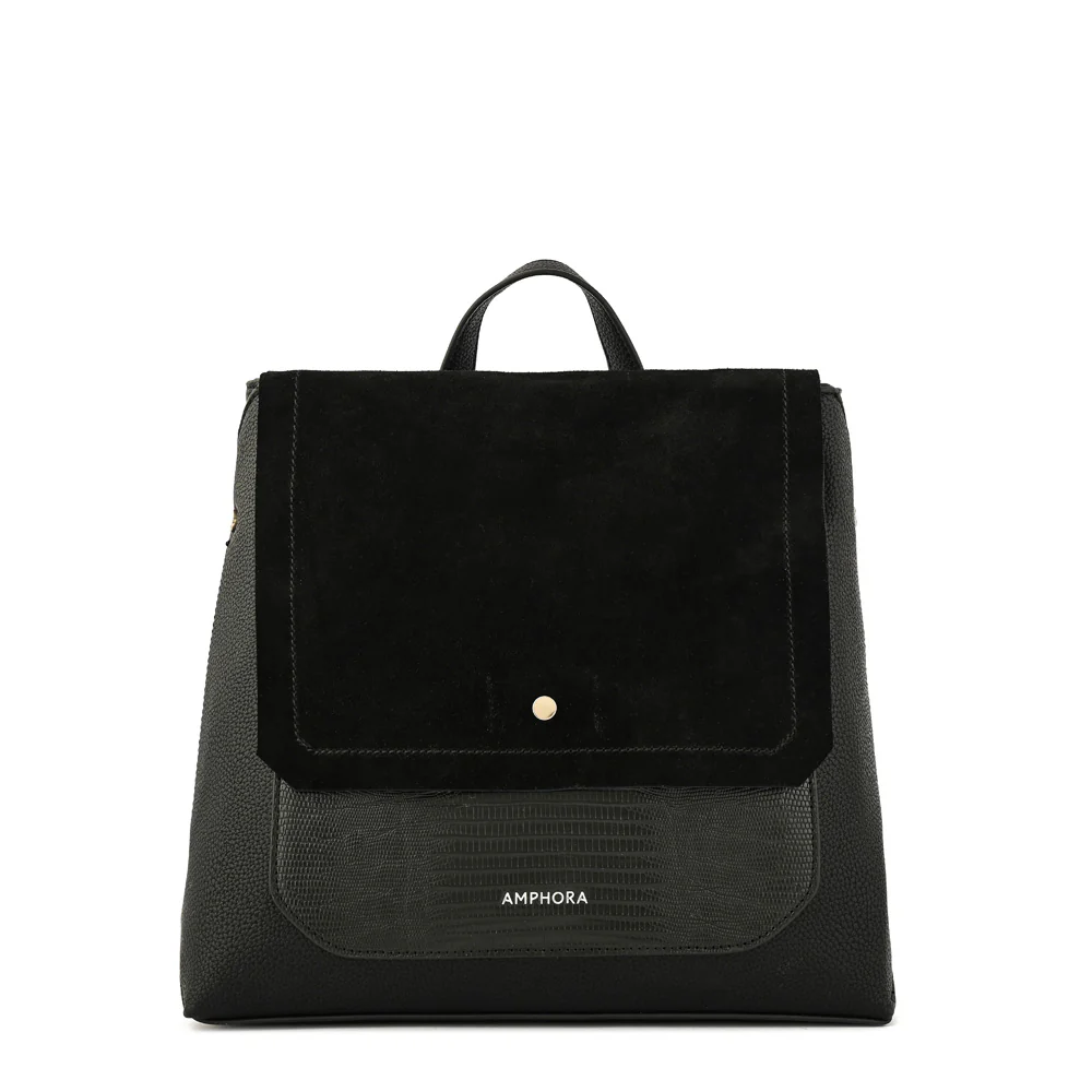 La mochila Becca se consagrará como tu compañera ideal. Confeccionada en PU mix, este modelo de Amphora es de alto impacto dado su diseño elegante pero always chic! De tamaño mediana, posee tres bolsillos internos, dos externos y uno trasero, además de un strap regulable y botón imantado. We just love it!