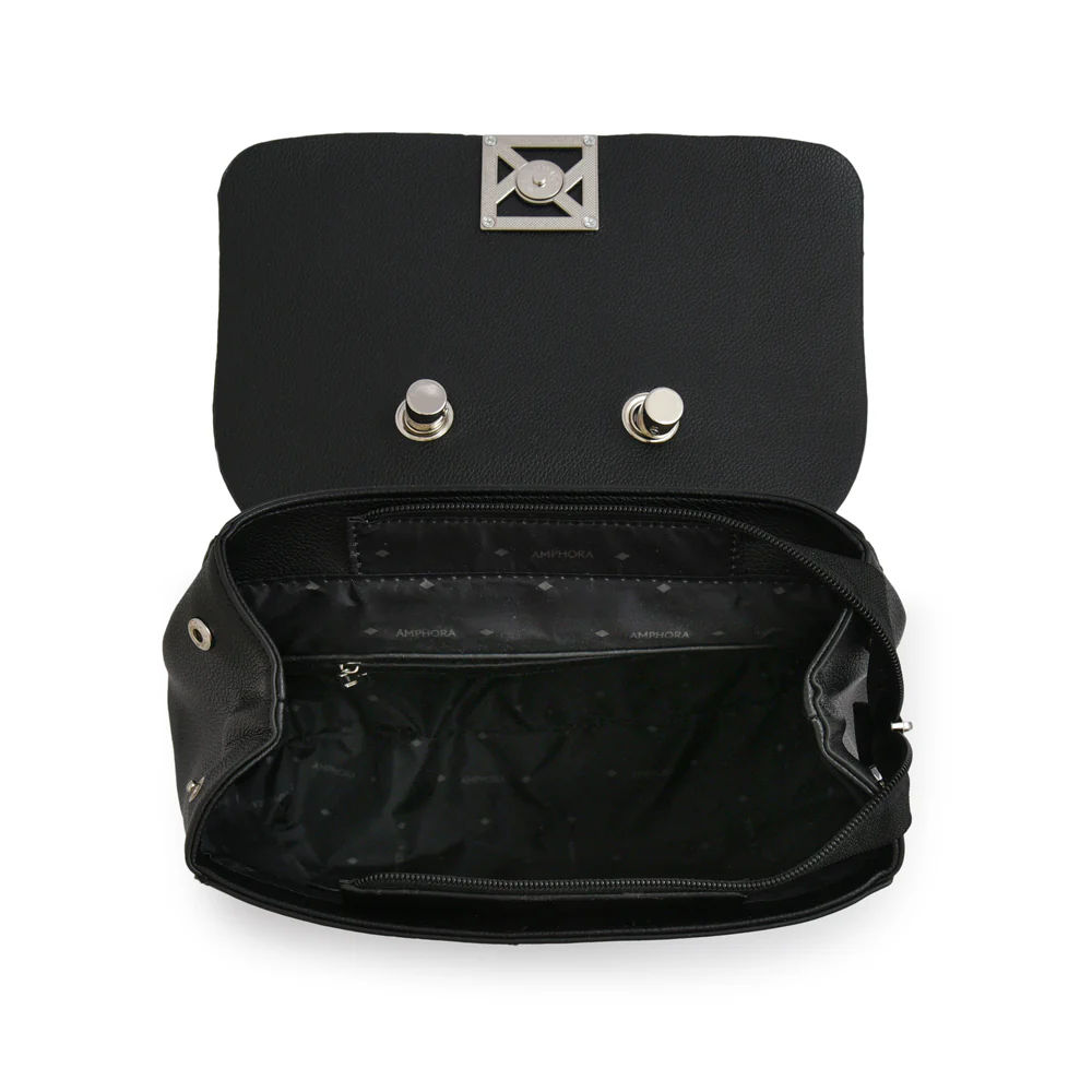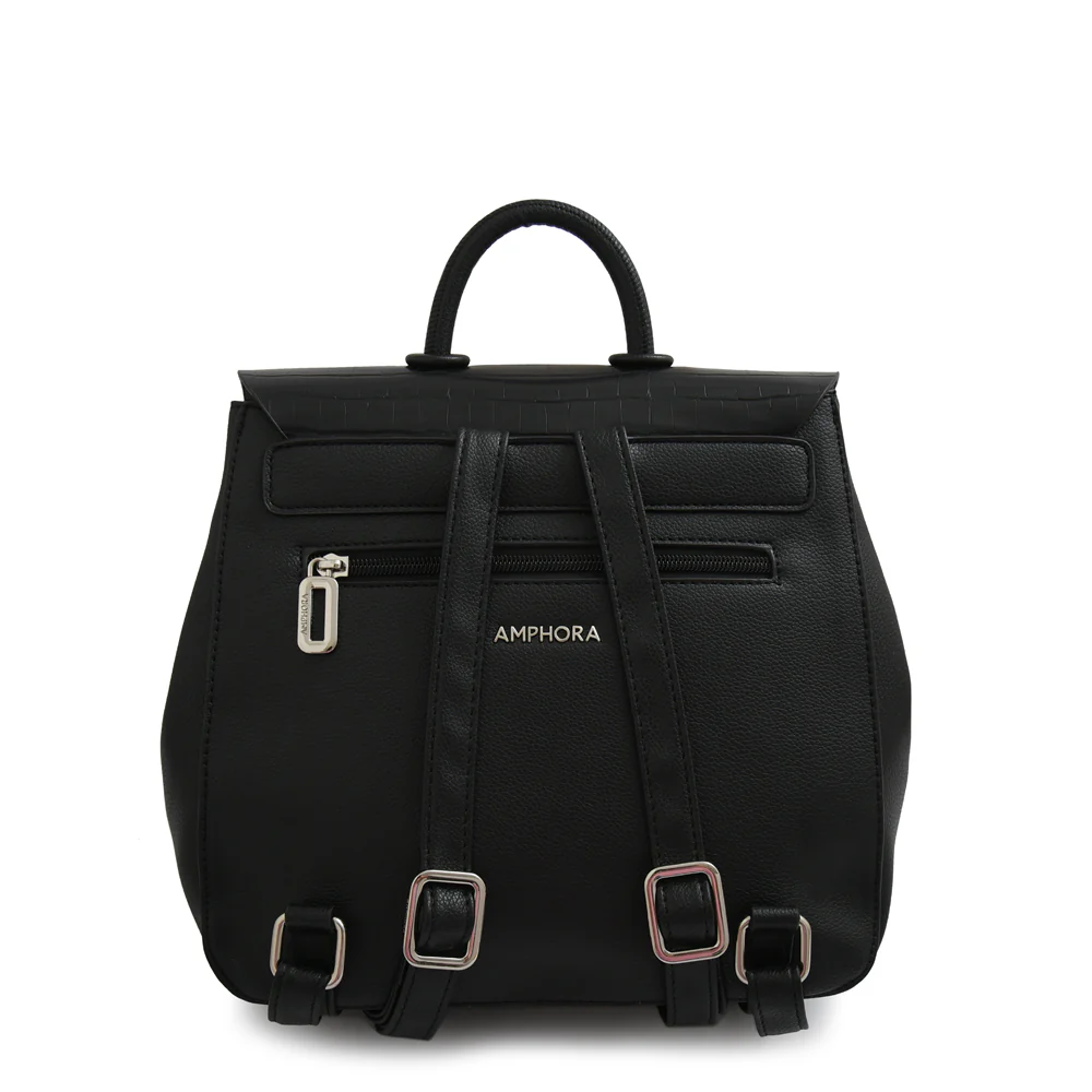 La mochila con tapa #Porto es la mezcla justa entre lo sofisticado y lo funcional. Hecha de cuerina texturizada con un acabado metalizado muy chic, ofrece 10 litros de capacidad, 1 bolsillo exterior y 3 interiores para mantener todo en su lugar. Su cierre imantado le da un toque práctico sin perder estilo. Negra, versátil y hecha para brillar este invierno. #Porto is the new black.
