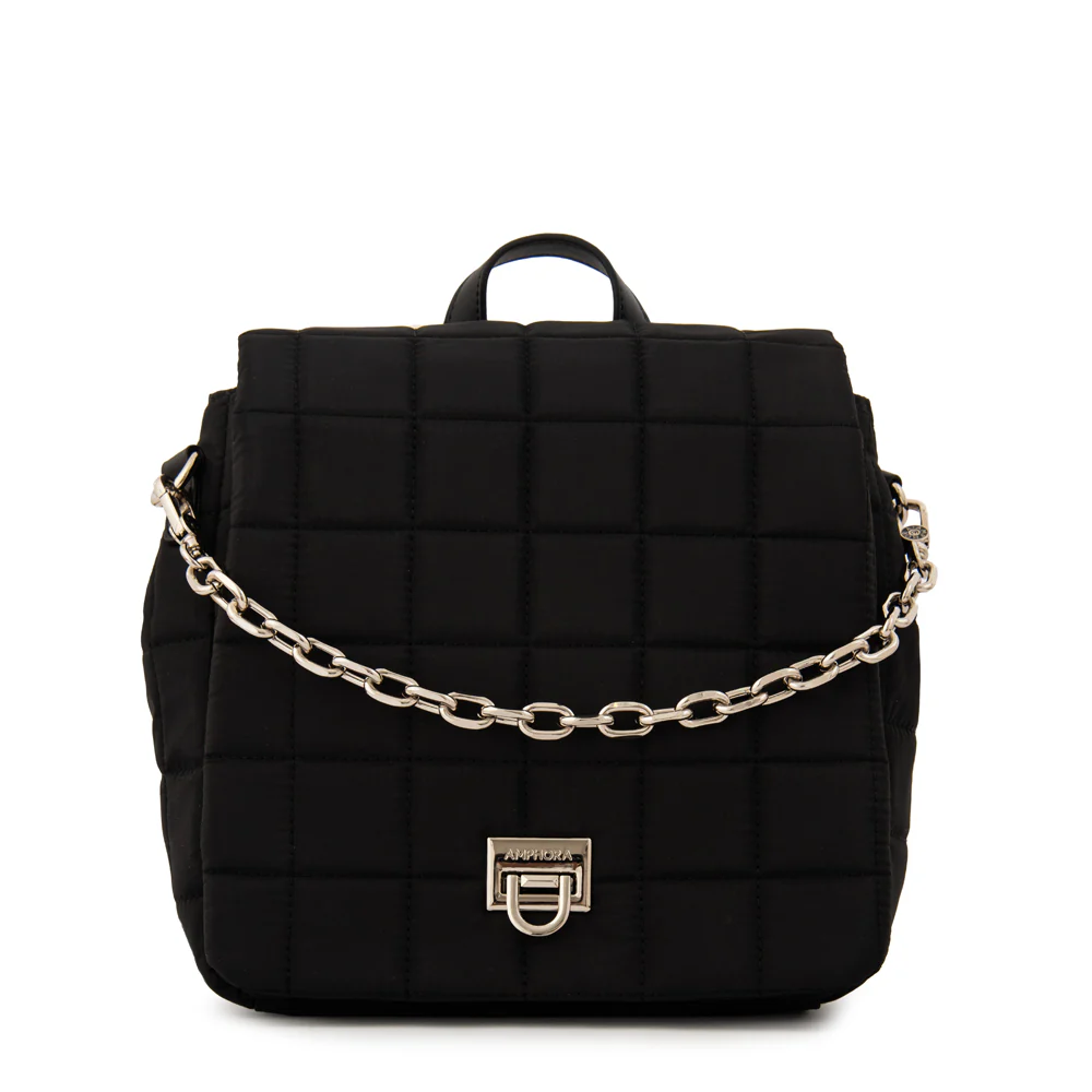 Obsessed with #Grecia la mochila con tapa que le da un toque chic a tu día a día. Confeccionada en nylon, esta mochila negra especial de 10 litros es la compañera perfecta para quienes buscan practicidad y estilo en un solo accesorio. Su diseño minimalista y elegante es ideal para llevar tus esenciales al trabajo, a la universidad, al gimnasio o a donde sea que te lleve tu rutina. El cierre con broche le da un toque de distinción, mientras que sus múltiples bolsillos (1 exterior y 3 interiores) te permiten organizar tus pertenencias de forma eficiente. Ligera y cómoda, es perfecta para el uso diario. Si buscas una mochila negra con un toque trendy y un tamaño práctico, #Grecia es tu elección.