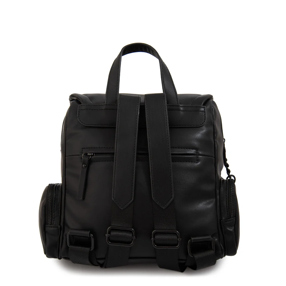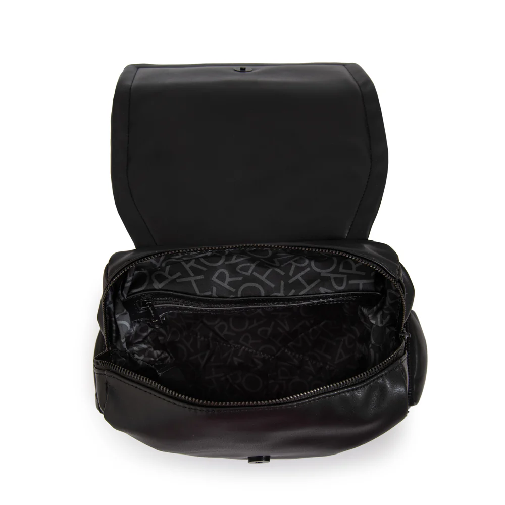 Classic reinvented! La mochila Clara en negro especial es un must-have para quienes buscan un accesorio versátil y sofisticado. Confeccionada en ecocuero liso con detalles en negro pintado, su diseño estructurado incluye un monedero a juego y un botón imantado para más seguridad. Sus dimensiones de 26 cm de alto y 25 cm de ancho la hacen compacta pero funcional. Correas ajustables y un look atemporal para cualquier ocasión. Take it anywhere!