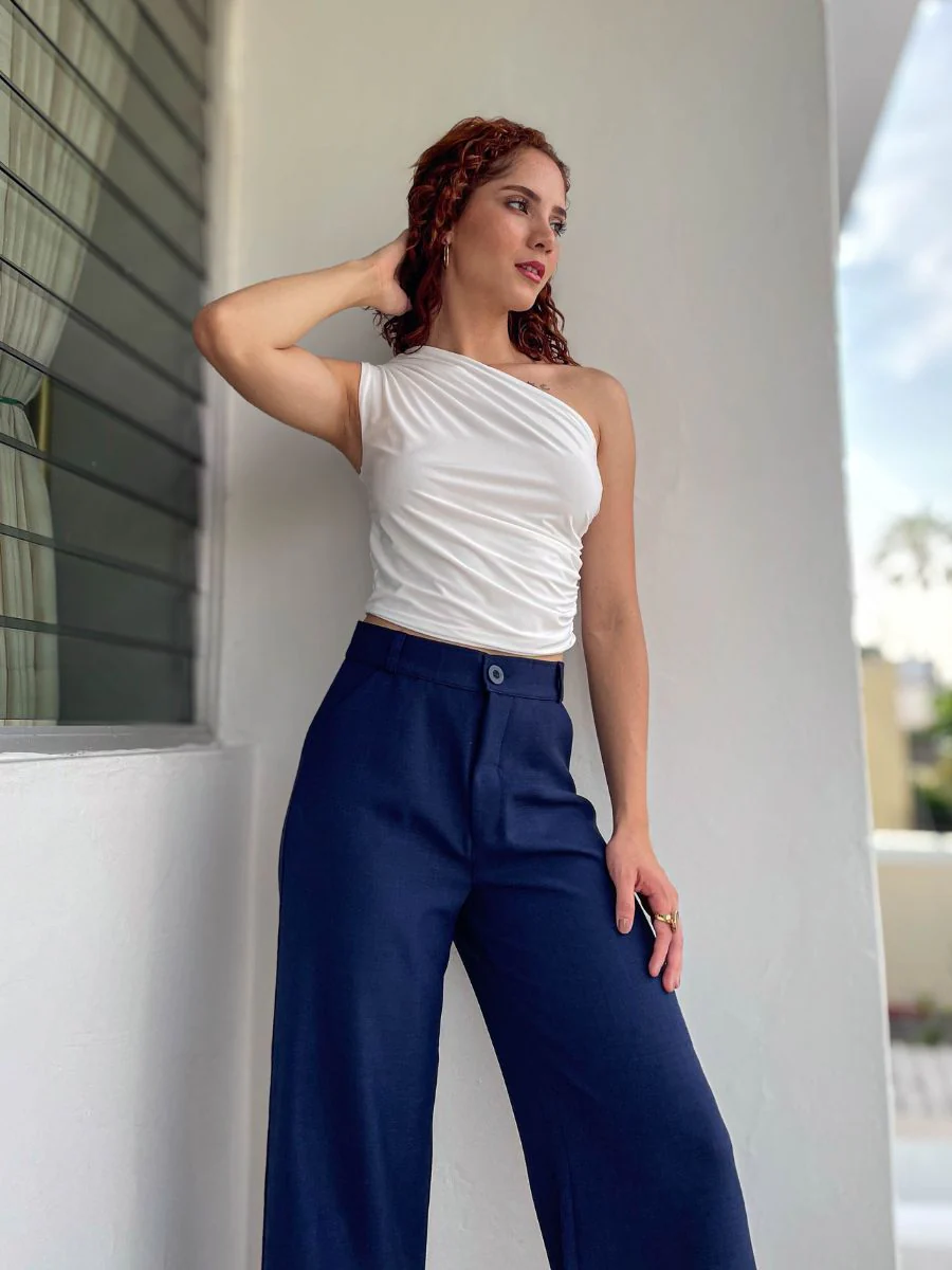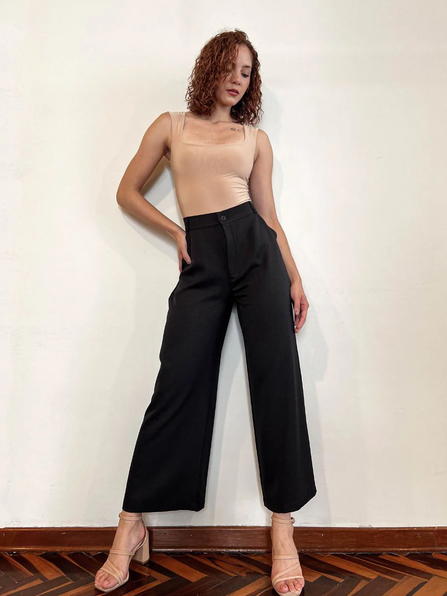 Pantalón con bolsillos laterales funcionales, sin pinzas delanteras.