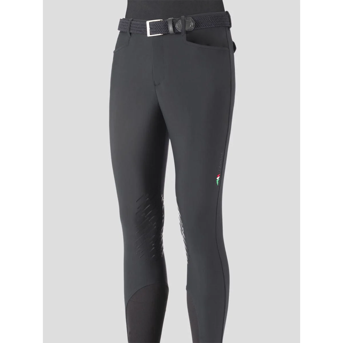 - Los detalles de diseño clásico incluyen un sistema de cierre elástico en la parte inferior de las piernas y el logotipo de Equiline bordado en la pierna.