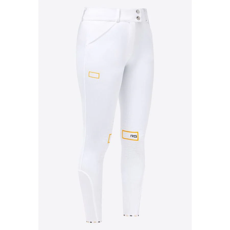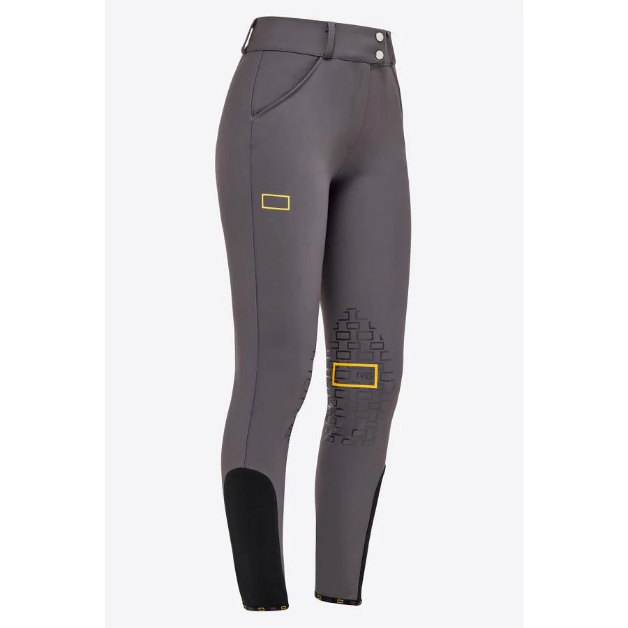 • Este pantalón de salto está confeccionado en tejido técnico bi-stretch y tiene un grip tono sobre tono a la altura de la rodilla para garantizar la correcta adherencia al alberdón.