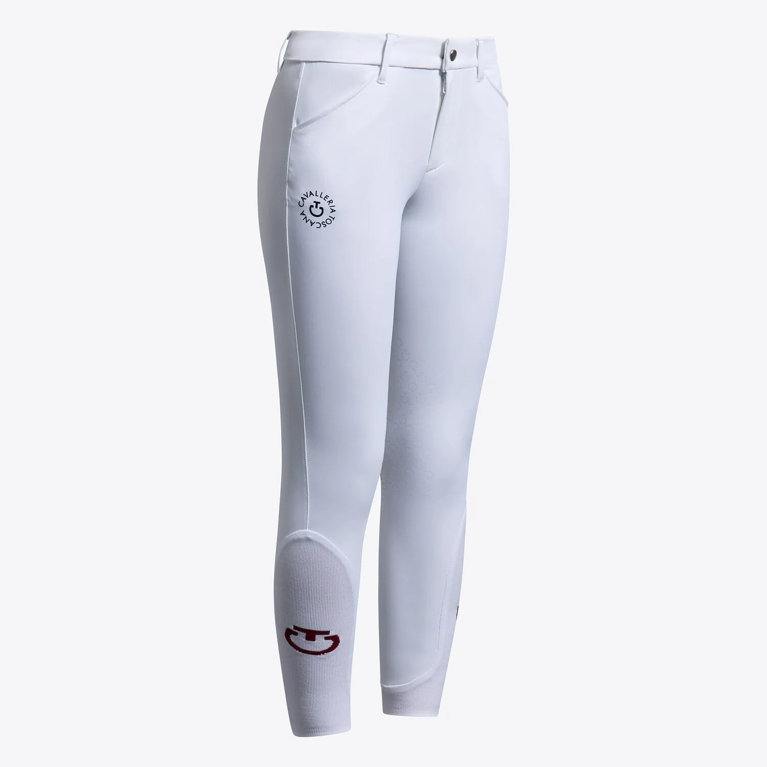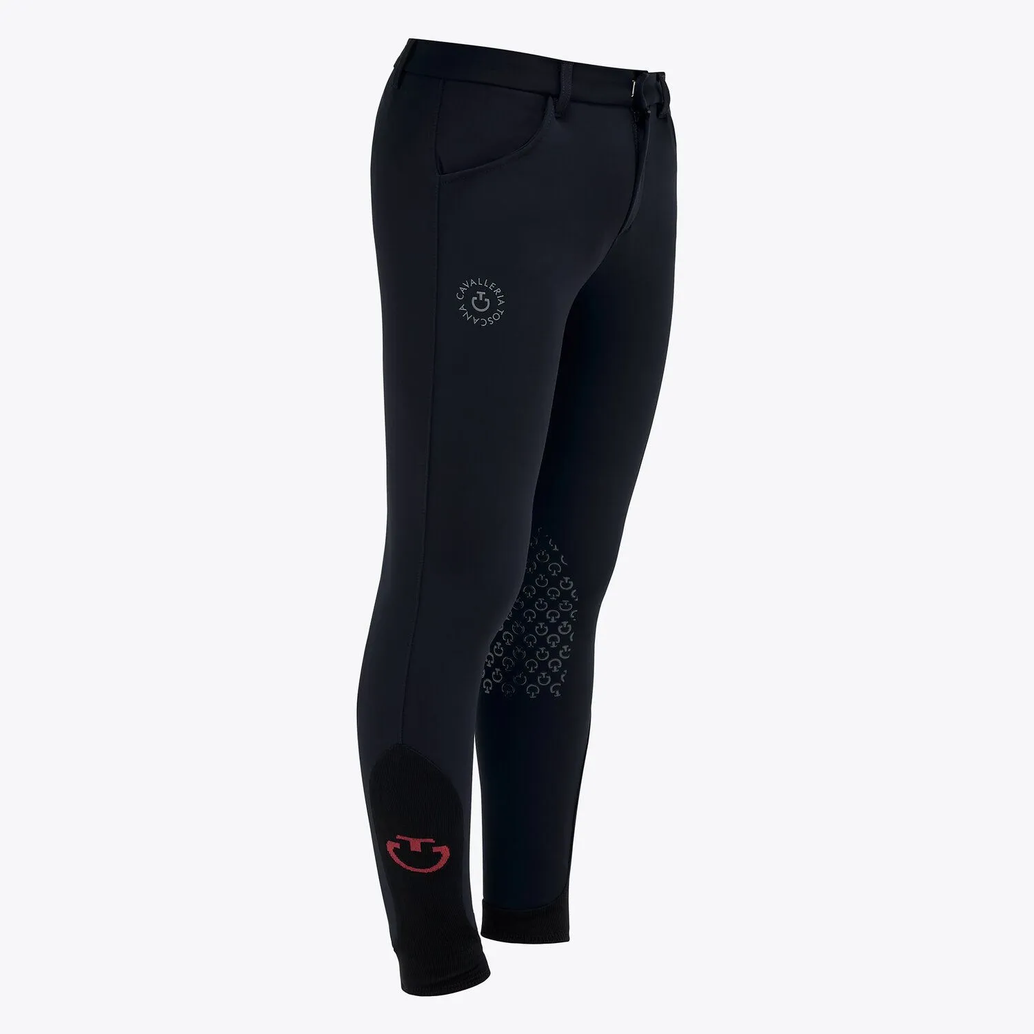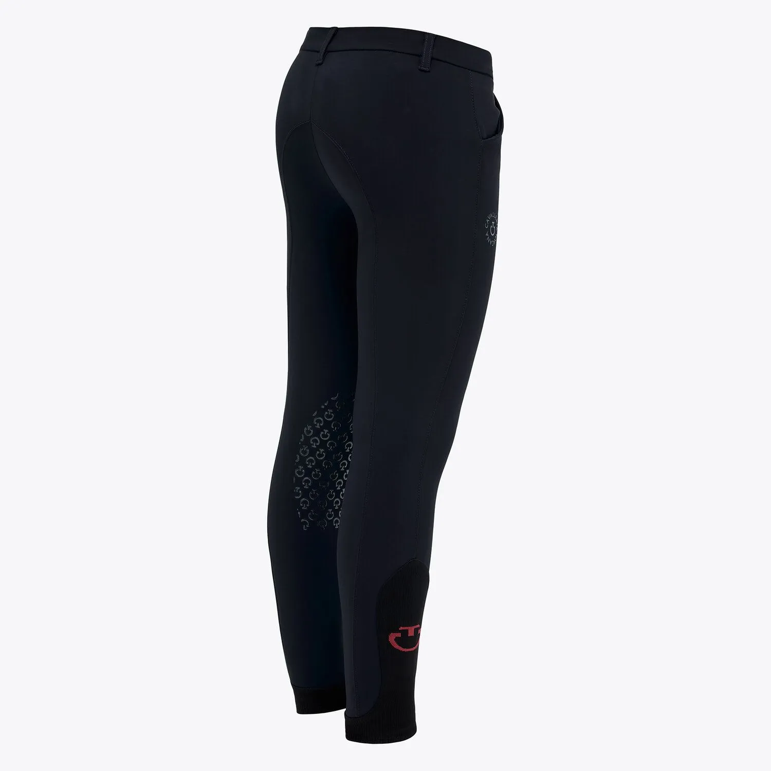 • La parte inferior de la pierna tiene paneles elásticos tipo «calcetín» que resultan cómodos de llevar debajo de las botas, decorados con el logotipo de Cavalleria Toscana en un color de contraste en el lateral.