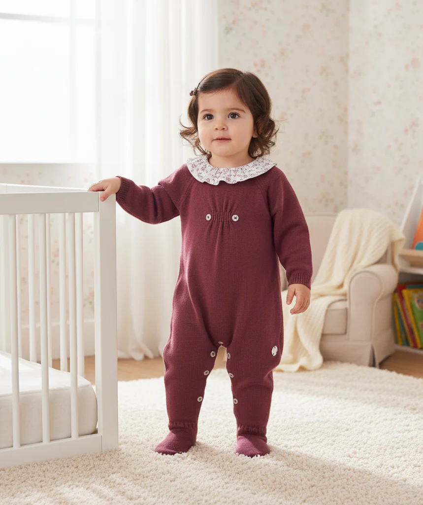 Pelele color bugambilla con volante en la cuello y aperturo en la entrepierna