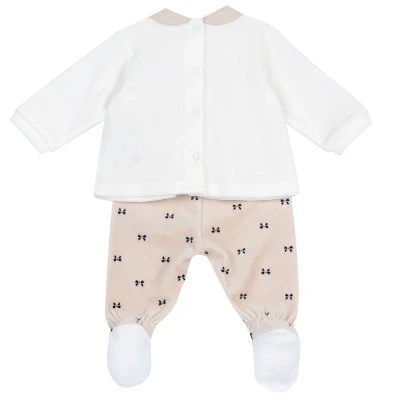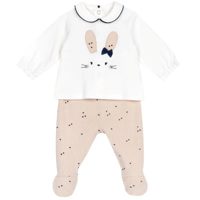 Este encantador conjunto para bebé combina ternura y comodidad, ideal para los primeros meses. Consta de dos piezas: