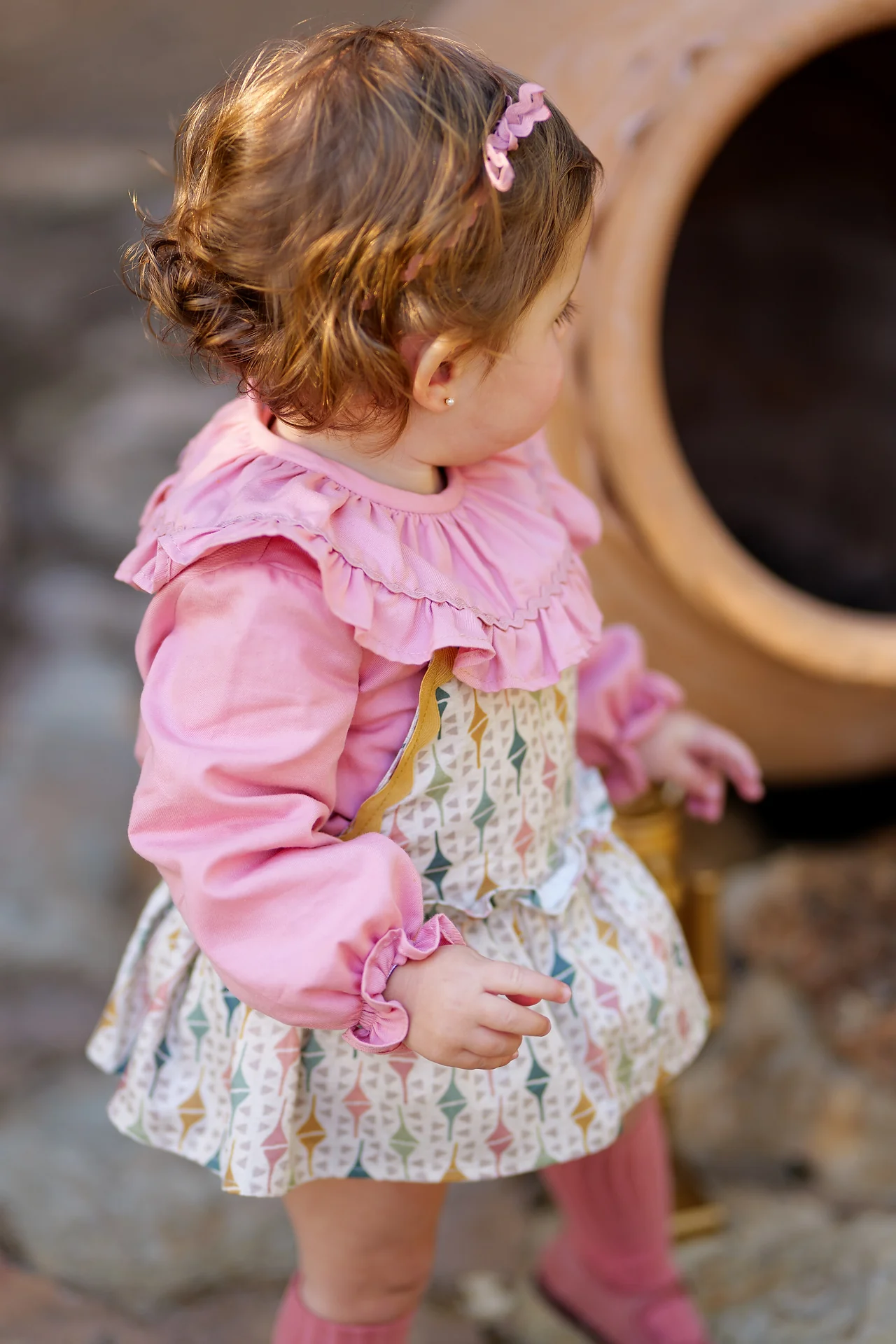 Diseño: Es un peto tipo ranita con faldita integrada, lo que le da un toque muy tierno y femenino.