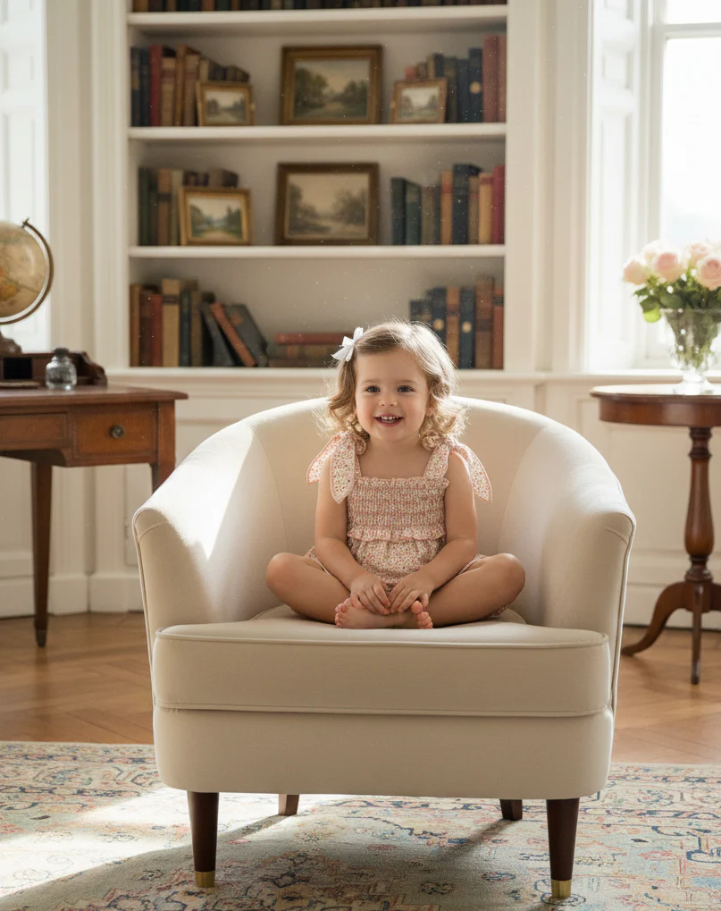 Corte Bombacho: La parte inferior es abullonada, con elásticos suaves en las perneras para crear ese volumen tierno típico de la moda infantil clásica.