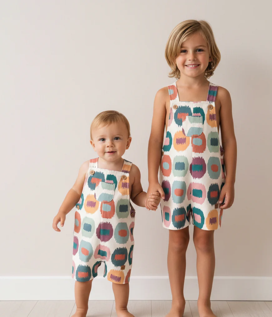 ¡Dale un toque de color y creatividad al armario de los más pequeños! Nuestro Peto Pinceladas combina un diseño artístico de vanguardia con la máxima comodidad para el juego diario.