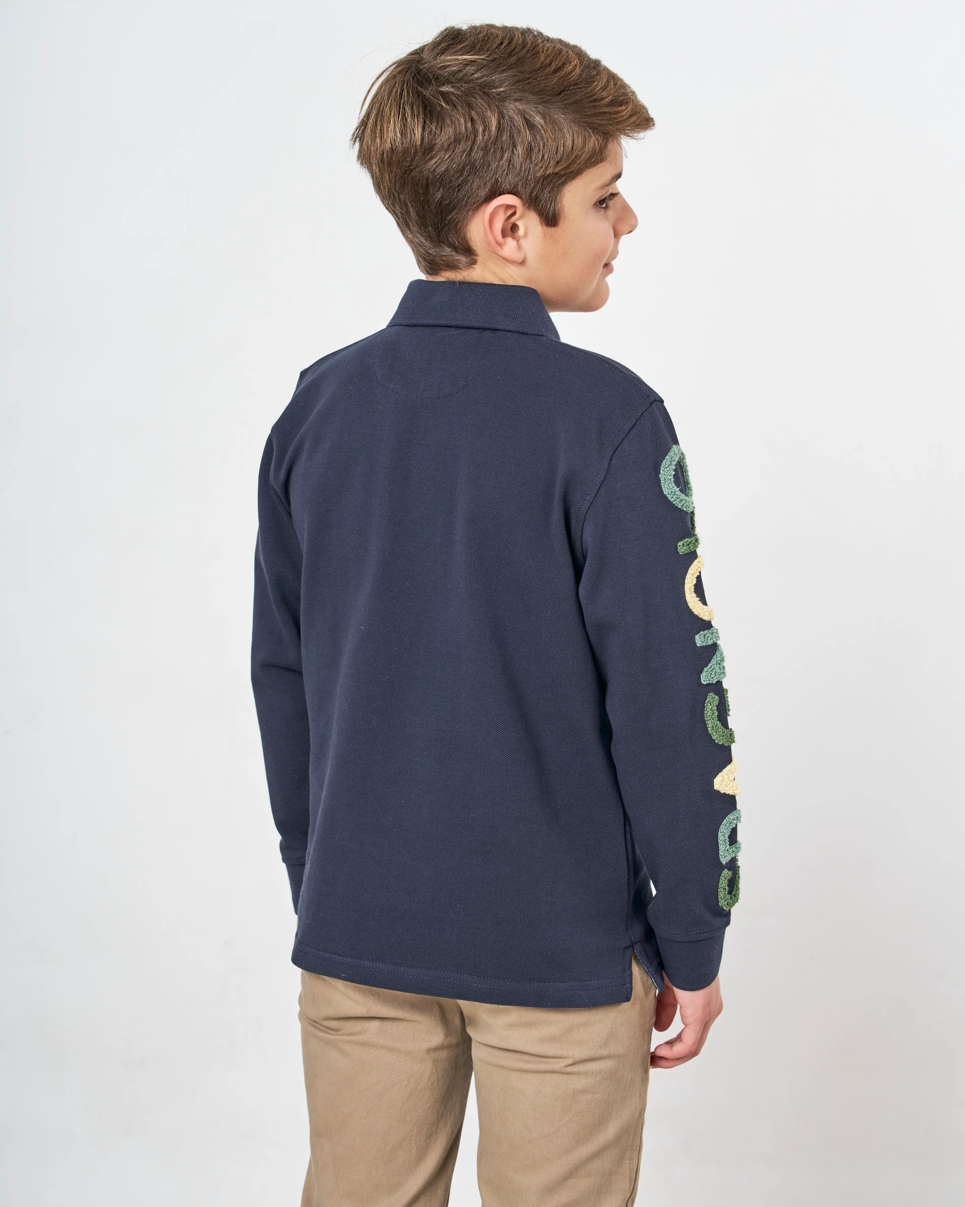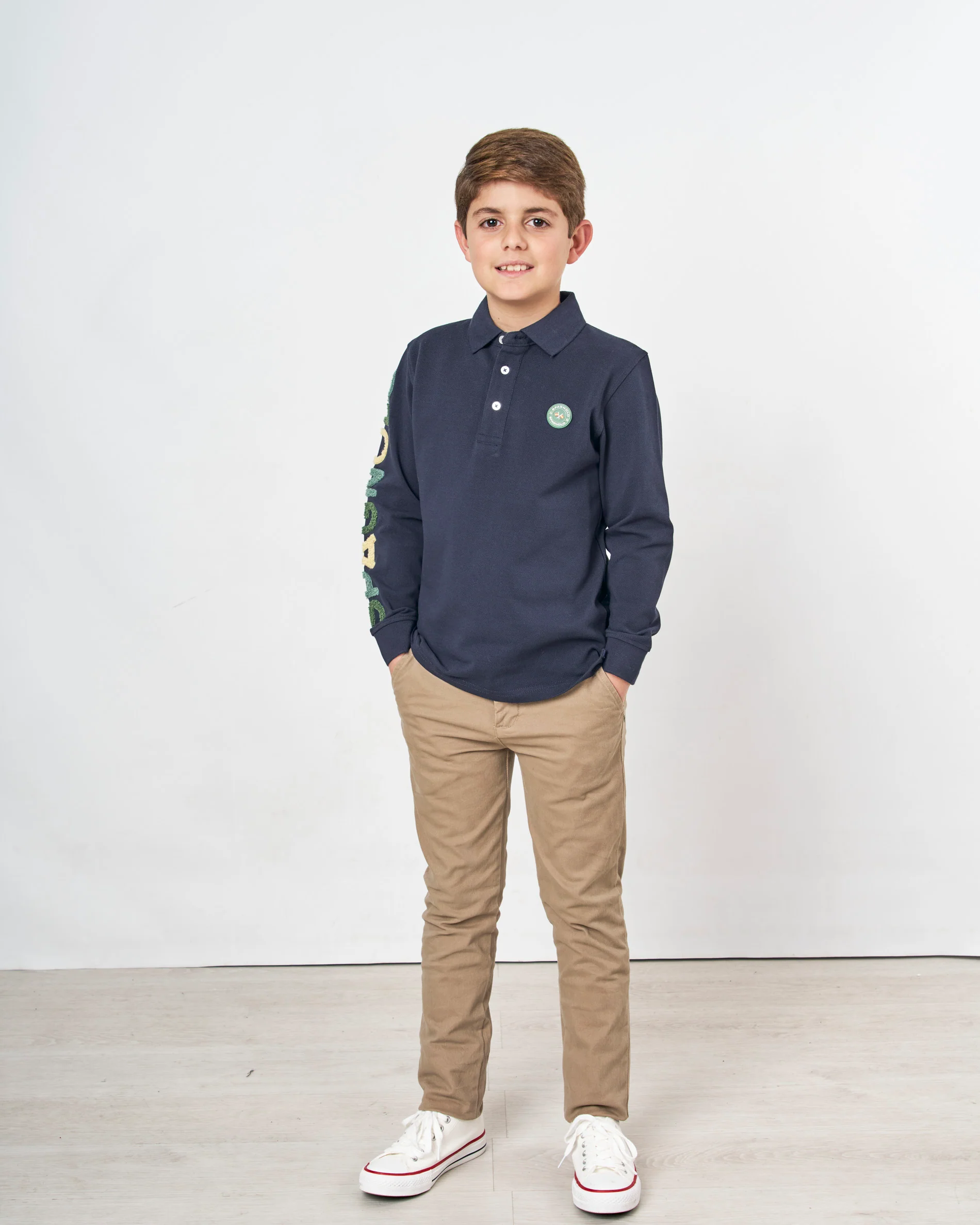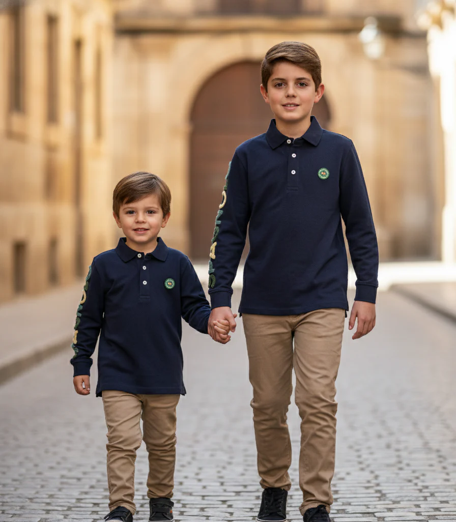 💚Polo marino para niño 4 años a 14 años. Modelo confeccionado en tejido de polo sin pelito, disponible en color marino. Una prenda práctica y versátil, perfecta para acompañar su día a día con estilo.