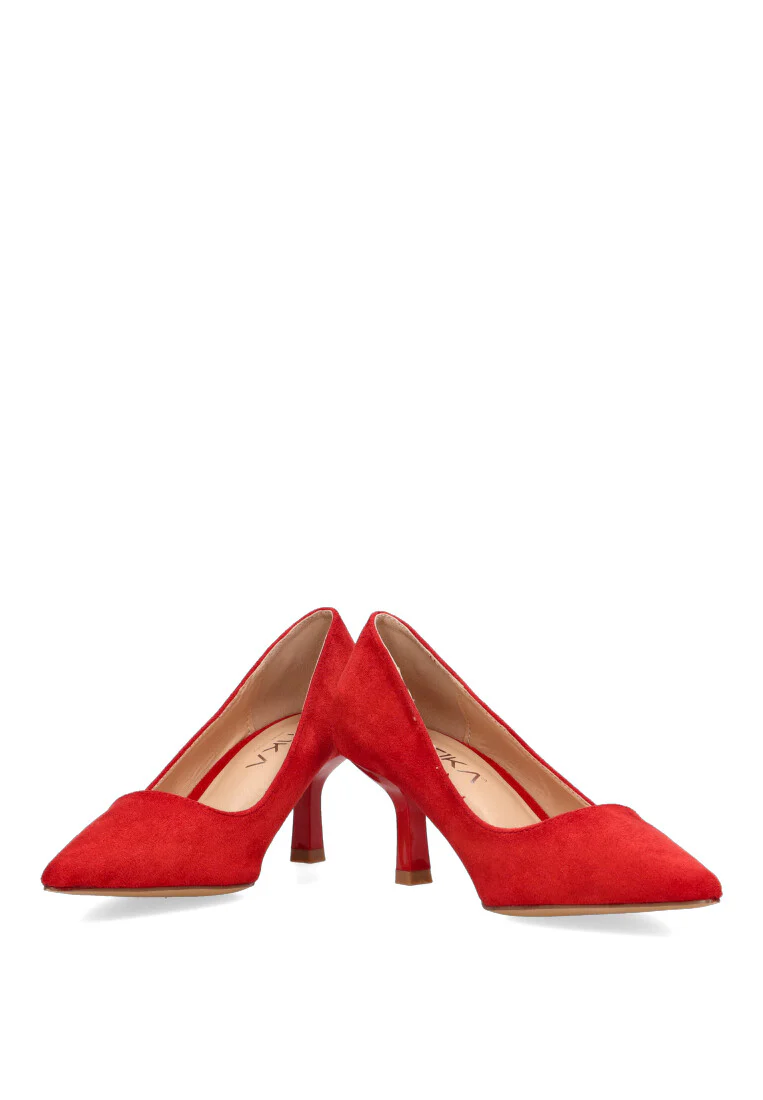 Estos salones rojos de ETIKA son la elección perfecta para la mujer que busca un calzado sofisticado y audaz. Su color vibrante y su diseño clásico los convierten en un básico imprescindible para cualquier armario. El tacón medio de 5 cm te brinda la altura ideal para estilizar tu figura sin renunciar a la comodidad. Ya sea para una noche de fiesta, una cena romántica o simplemente para destacar en una reunión importante, estos salones te harán sentir segura y radiante.