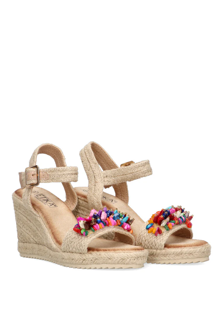 ¿Estás lista para vivir el verano al máximo? Las sandalias Étika Balança con cuña y abalorios son el complemento perfecto para tus días más divertidos. Su diseño boho chic y su comodidad te permitirán disfrutar de cada momento sin preocupaciones.