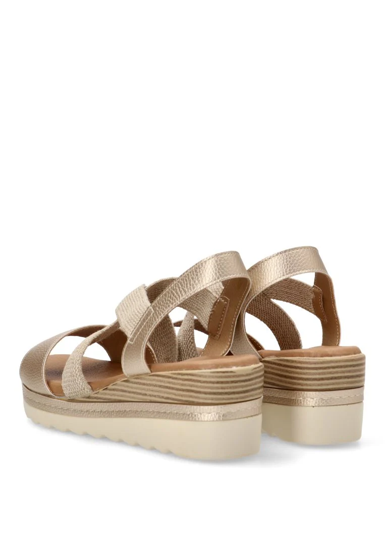 - Diseño: Sandalia con tiras cruzadas y cuña media de estilo diario.